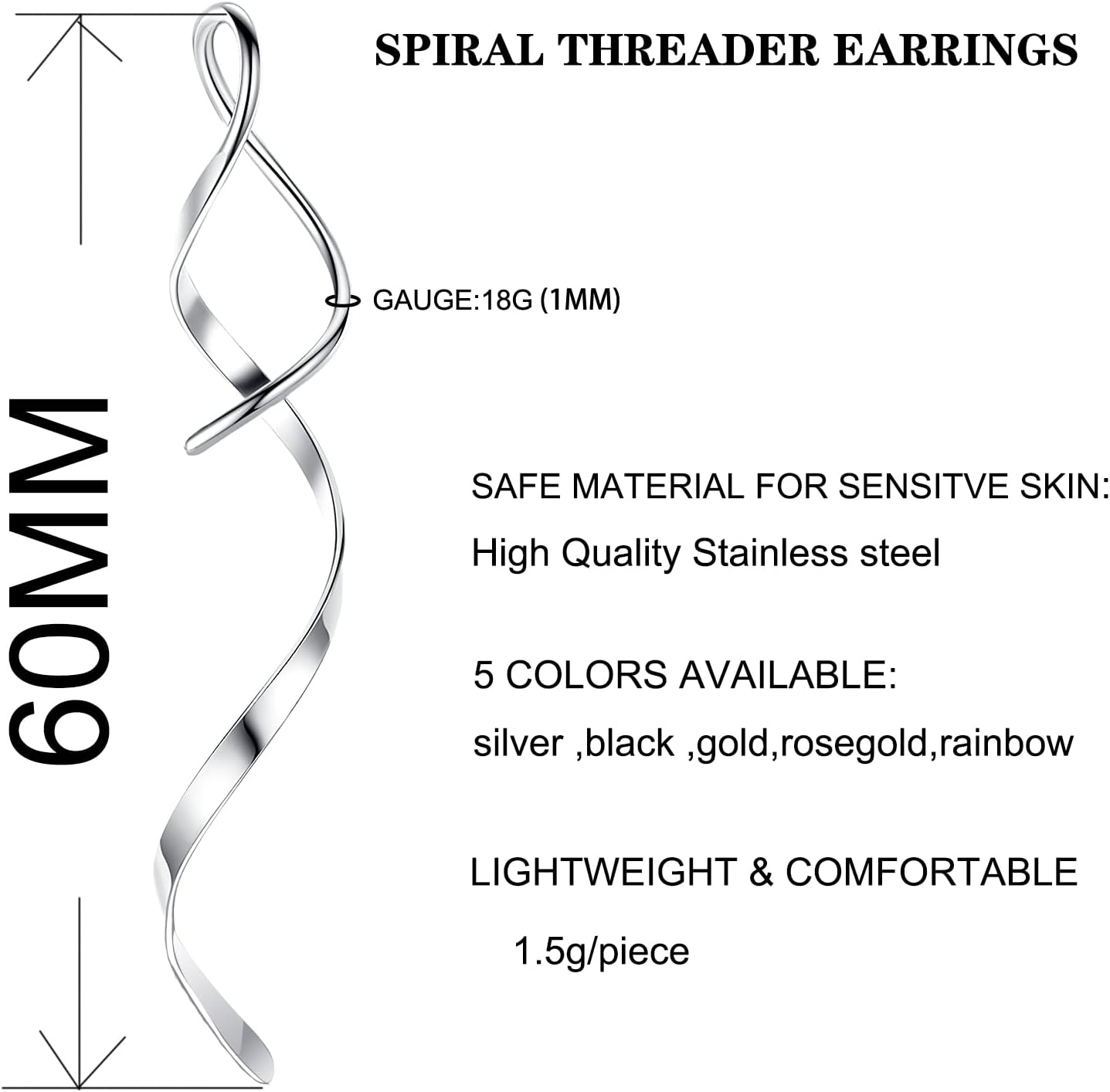 Store New Arrivals Add to Favorite View Feedback Contact Spiral Threader Earrings, 18G Stainless Steel Drop Dangle Handmade Twisted Linear Curved Dangling Minimal Earrings Description Gem Type No Gemstone Color RAINBOW(2Styles) Material Stainless Steel Metal Stainless Steel Department womens Back finding no back Package Dimensions 2.7 x 2.7 x 0.6 inches; 0.8 ounces Spiral Threader Unique Design Lightweight earrings made of stainless steel for sensitive ears. Drop length: 1.5 Inches. Twist them to insert. Gauge Size:18G/1MM Free Gift Box -High quality gift box being used to pack these trendy and unique earrings for women makes it a decent gift for mother, sisters, daughter, bridesmaids etc. On any occasion like birthday, wedding, Christmas and so on. ABOUT US We offer the best prices around on high quality products. Our E-store includes media such as books, movies, music and games while offering electronics, toys, sporting apparel, clothing, tools, general home, garden items and more. SHIPPING We are always working hard to ensure your package arrives as soon as possible. Please understand that some factors like weather, high postal traffic, and the performance of shipping companies are outside of our control. We offer free shipping to the lower 48 states and ship within 2 business days of payment, usually sooner. We do not accept P.O. Boxes. Please provide a physical address. For shipping outside of the continental USA, we only use eBay's Global Shipping Program.The item is shipped to KY and then sent to the rest of the world. International customers are responsible for all duties and taxes. Continue to check out in order to calculate costs for shipping the item to your country. Messages regarding eBay's Global Shipping Program MUST be directed at eBay EXCLUSIVELY. RETURNS We offer a 30-Day Return Policy on items which you are not completely satisfied with. You have the option for a full-refund or an exchange of the item. No returns are available on items shipped outside of the USA. PAYMENT We accept PayPal. CONTACT US This page content is yet to come Please ad us to your favorite seller and visit again later Thank You CUSTOMER SATISFACTION We try our very best to make sure every customer is completely satisfied. If there's a problem, message us! We're happy to help. WE ACCEPT Copyright © 2021 AutoDS. | All Rights Reserved