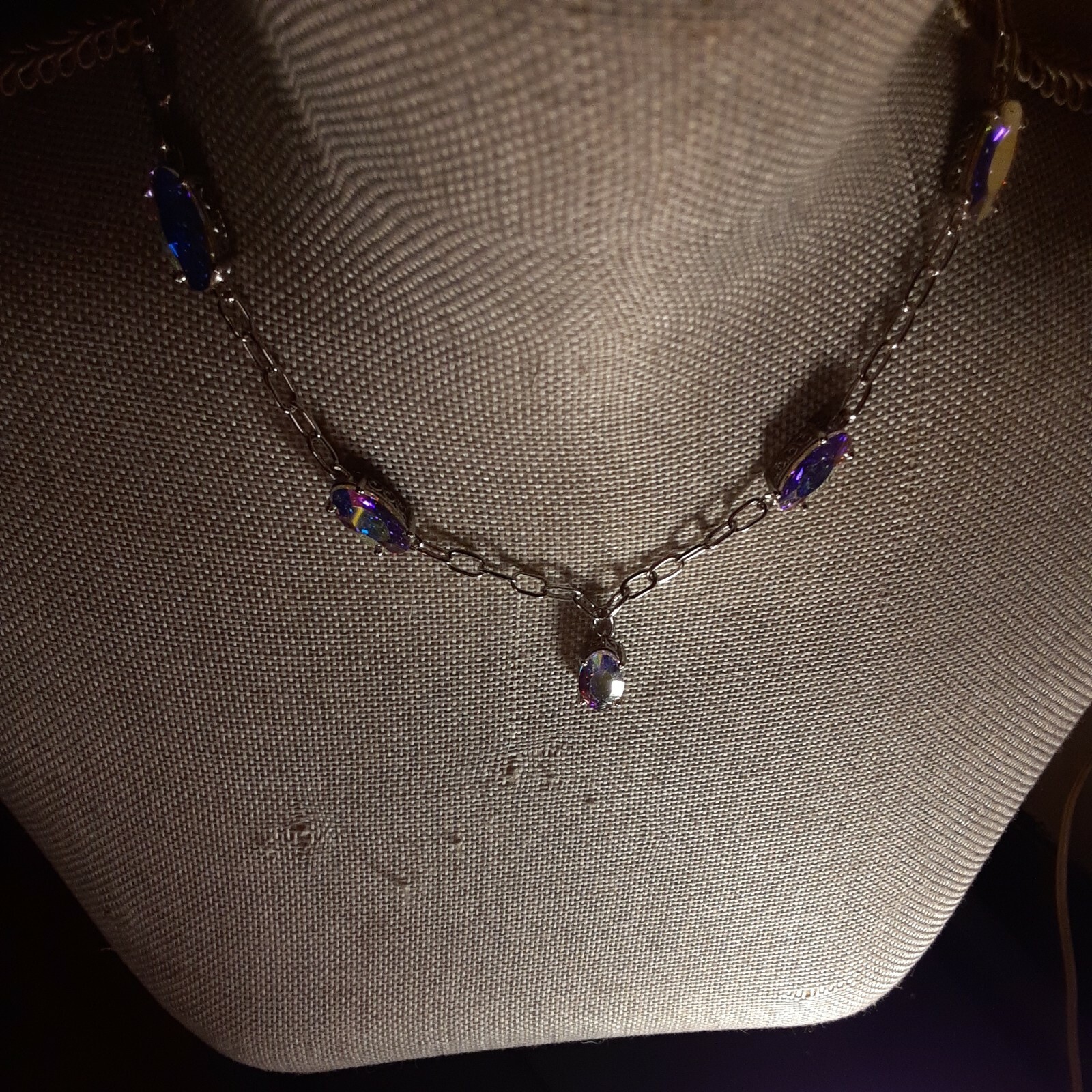 Est Ret Price $489.99 Designer Inspired Paper Clip Design Karis Made With Aurora Borealis Color Crystal Station Necklace in Platinum Bond Brass (18 Inches) The Metal Secret - Crafted in Platinum Bond Metal an Impressive Luster with Greater Durability is Provided to this Ravishing Beauty Genuine Laser Tag Certification 7 Gems 18mm X 9.5 mm Ovals Genuine AB Crystals Free Genuine Laser Tag Certification Provided with Purchase Value Buy - Replacement Crystals can be Expensive Free Shipping (353)