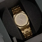 Our Perspective: Maybe it was Hailey and Justin Bieber matching mini Royal Oaks on social media or the new frosted 23mm Royal Oaks having the entire ladies’ watch world in a chokehold, but finding a Royal Oak at 26mm or smaller has quietly become both harder and more expensive. Small Royal Oaks are having an it-girl moment and the best ones are no longer flying under the radar. What makes this 1970s Royal Oak ref. 6007BA so compelling is how effortlessly chic it feels. In 18k yellow gold and just 26mm, it wears more like a piece of jewelry than a “downsized” watch. The proportions are spot-on, the design feels intentional, and on the wrist it delivers that unmistakable Genta-designed Royal Oak presence with a softer, more stylish edge. This is the kind of watch that looks just as right with denim and a tee as it does dressed up. The irony? The modern frosted gold 23mm Royal Oak quartz trades around $90,000. Meanwhile, this early Royal Oak, with true rarity and far more character, sits at under $30,000. Once you see them side by side, it becomes clear: this isn’t about size or gold weight- it’s about taste. Call it a mini, baby, or ladies’ Royal Oak if you want, but pieces like this are the original blueprint for the trend we’re seeing everywhere today. It’s chic, it’s rare, and it’s exactly the kind of Royal Oak the style-forward collectors are quietly chasing. Condition Report: Very Good overall condition. Watch recently received a full case and bracelet refinish/polish and is in beautiful condition with sharp edges and brushing. Screw heads on bezel, caseback and links show signs of removal. Caseback and crown have medium signs of wear. Medium scratches throughout crystal. Dial and hands are in very good condition with only minimal signs of age. Light stretch on bracelet. Bracelet has 20 links and fits a max wrist size of 6.5". One link (second link @ 6 o'clock) appears to have been repaired previously with a silver pin. Watch sets, runs and keeps accurate time without issue. Watch does not have original box or papers, but comes with a serialized AP service box. Condition Grade: 8.5 /10
