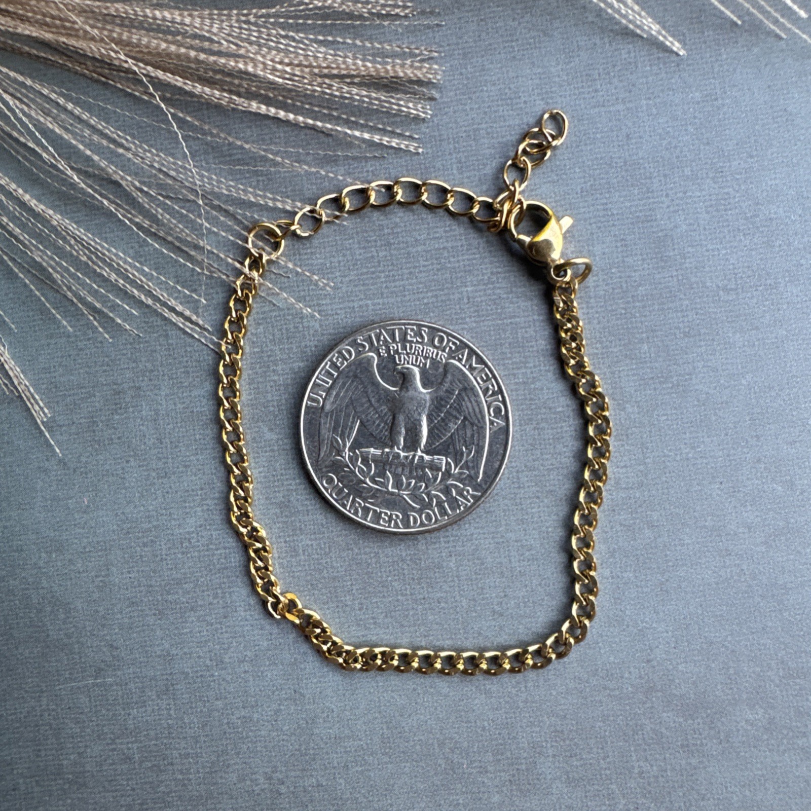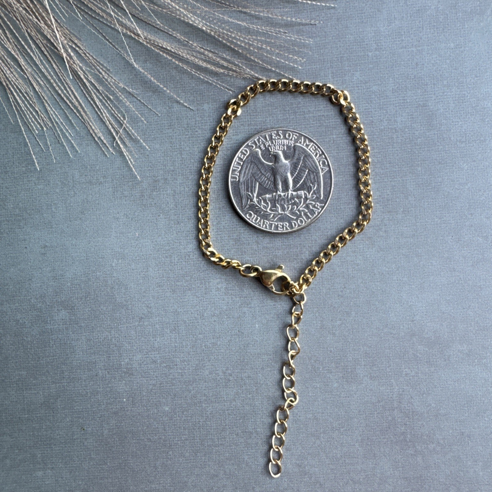 Love this bracelet! The gold coating gives it a luxe look without the high price. The curb chain is sleek and versatile—perfect for stacking or wearing solo. The lobster clasp stays secure, and the extender ensures a comfy fit. Lightweight yet durable, it’s become my everyday go-to. Great quality for the price!