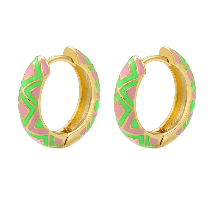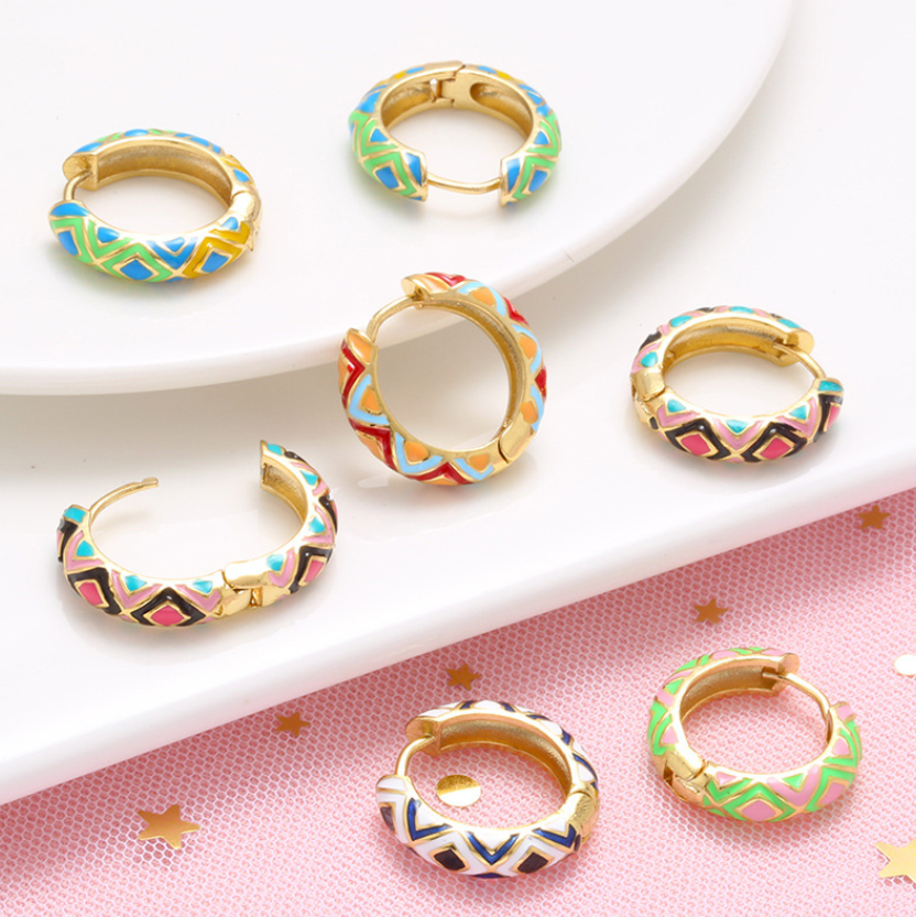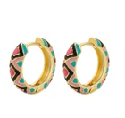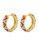18K Gold Plated Colorful Tribal Enamel Hoop Huggie Earrings for Women
