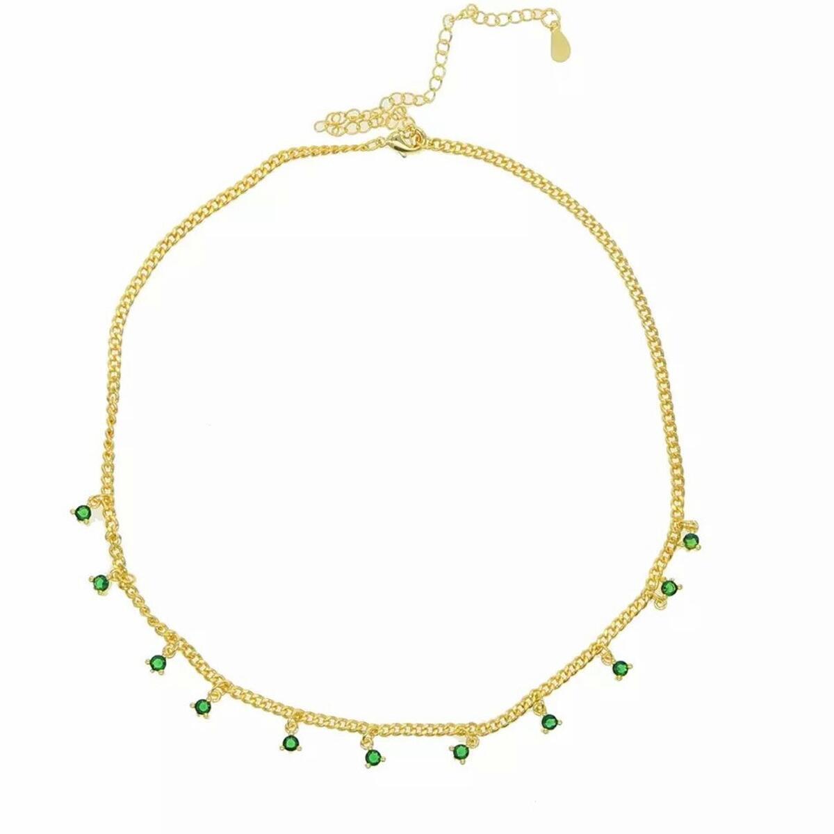 Djade "emerald" chain The luxurious djade "emerald" chain from the Beauty of Emerald collection with unique sparkling zirconia stones in green gives your look elegance, a delicate appearance and charm of a queen. Through zirconia stones, this chain becomes an absolute eye -catcher on every opportunity. In combination with other chains of your choice, this emerald chain looks stunning! In keeping with this chain, there is a ring and earrings as a perfect addition. Zirconia sparkle almost as beautiful as real brilliant - zirconia are considered the perfect brilliant copies. At first glance, even experts find it difficult to distinguish the artificial stone from a brilliant. The chain was gold -plated in 18 carat (750 gold) and therefore guarantees a luxurious charisma, permanent shine, no coloring by gilding, rust -free, nickel -free, high quality processed, color and gloss like real gold. Art. No.: K5591D Main metal: Brass Gilt: 750 gold 18 carat Stone stock: Cubic Zirconiasteine of the highest quality, caught, in brilliant cut Chain length: 35 cm + 10 cm extension chain Closure: Carabiner closure This piece of jewelry is delivered to you in a beautiful Djadee design gift packaging Information on gilding Treat yourself to luxuriously gilded jewelry in 18 or 24 carat Our gilded jewelry impresses with high resistance and durability, because gold oxidized and corroded. The gold -quality 999 (24 karat) or 750 (18 carat) is used in gold. This high -quality coating exudes a very special, magical effect, convinces with luxurious shine and gives a special charisma. The jewelry only needs minimal care and delight your owner for a long time. During sports, showering and swimming, the jewelry does not lose its color and remains durable. Let dream come true, find something unique that expresses your very personal style. Advantages of our gilding High resistance and durability Corrosion protection and oxidation protection Resistance Color and shine like real gold Good alternative to real gold jewelry Minimal care How long does this gold coating last? Our gilding corresponds to the latest state of the art and is particularly durable. The gold is firm and inseparable to the surface, so that peeling, bladder formation or similar. is impossible. Since it is a hard gold, it can survive great stress and a long wearing time. It depends on how the carrier treats the piece of jewelry and how well the care instructions are implemented. Set with The luxurious djade "emerald" chain from the Beauty of Emerald collection with unique sparkling zirconia stones in green gives your look elegance, a delicate appearance and charm of a queen. Through zirconia stones, this chain becomes an absolute eye -catcher on every opportunity. In combination with other chains of your choice, this emerald chain looks stunning! In keeping with this chain, there is a ring and earrings as a perfect addition. The gold -quality 999 (24 karat) or 750 (18 carat) is used in gold. This high -quality coating exudes a very special, magical effect, convinces with luxurious shine and gives a special charisma. The jewelry only needs minimal care and delight your owner for a long time. During sports, showering and swimming, the jewelry does not lose its color and rema