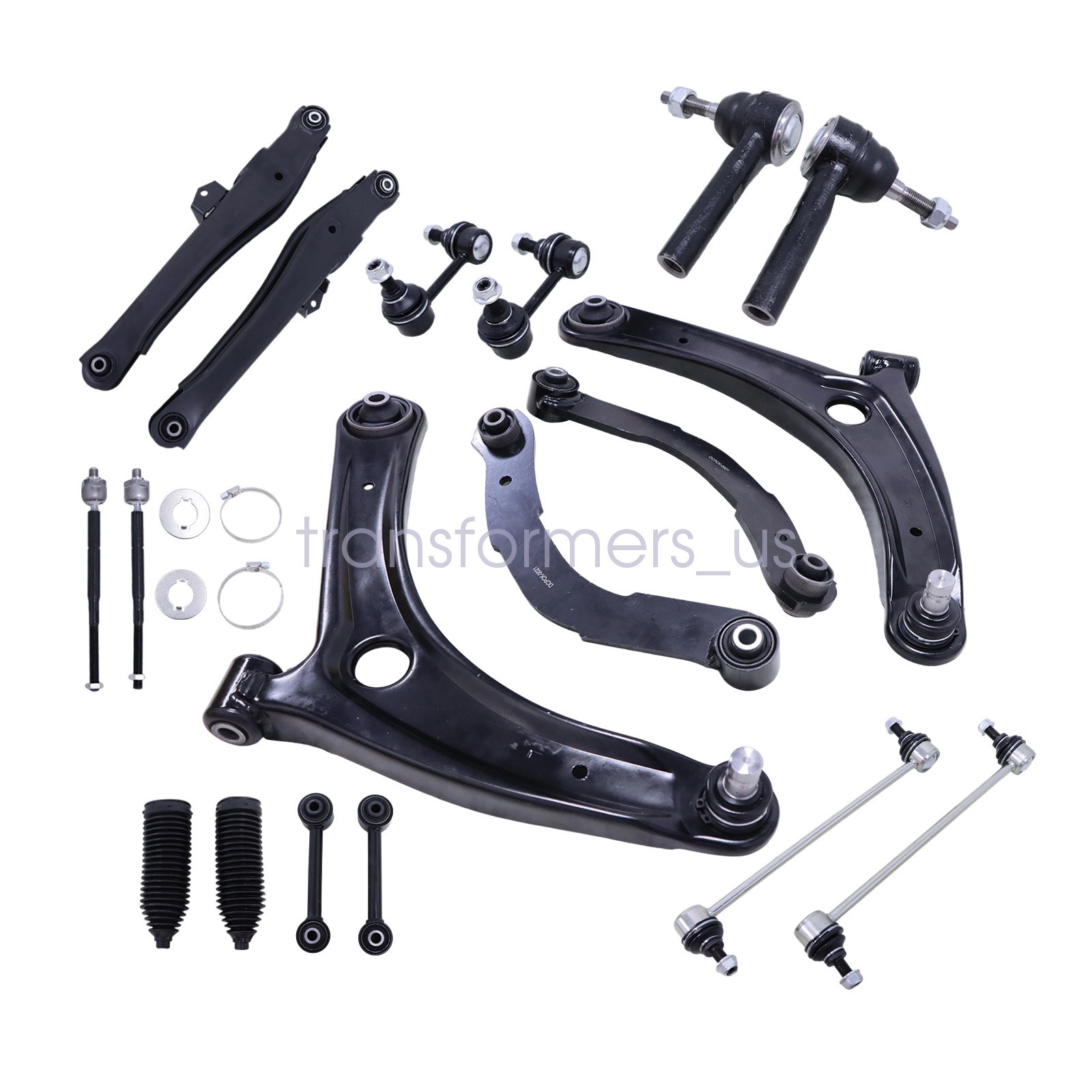 18Pcs Front Rear Suspension Kit For 2007-2009 Jeep Patriot Compass Dodge Caliber *Important Notice* Please kindly check your car model and make sure the model fits in case of buying the wrong product. ATTENTION!!!!! Even if you find your car model in the description list it might not be suitable because of the variaties of modifications. If you are not sure about part fitment please write us the VIN number (Chassis No.) of your car and we will check if the part fits specifically your vehicle Specifications : Fitment : Jeep Patriot Compass Dodge Sport 2007-2009 (Please refer to compatibility chart for details) Material : High Quality Placement on Vehicle: Front, Lower, Left, Right, Rear Installation : Direct Replacement Part Number : K620066 K620065 K641868 K641281 K641226 K750058 K750385 EV80645 ES800408 Package Including : 8Pcs Front Rear Suspension Kit (As the pictures shown) Feature: -According to the factory specifications. -100% brand new and high quality guaranteed. -Easy to use and to operate at affordable prices. -Perfect cover that is useful, helpful and so practical. -Made top-grade material. Installation Notice : Please Take a Look at Your Old One Before Ordering. Please Be Very Careful to Check Our Photos, Make Sure The Photos Showed Is The Same as You Wanted. Because the country is different,may be different car models,product compatibility is for reference only. If you can not make sure the fitment,please send us your car model name, model year and photo of your car before purchase. Due to the different display and different light, the picture may not reflect the actual color of the item. Thanks for your understanding. 4 Please allow 0.5-1 inch difference due to manual measurement. (1inch=2.54cm) No instruction included. Professional installation recommended. Any damage and improper installation during the installation will not allow to get money refund. If You Are Unsatisfied with The Received Item or Have Any Issues, Please Contact Us Directly for Communication, Instead of Directly Opening A Dispute on The Ebay Platform. We Will Make Every Effort to Provide You with The Best Possible Solution.Thanks for browsing! General Policies : Dear customer,if you have any questions,you can contact us,we will provide the best service for you. Shipping policy : The item will be shipped within 24 hours on payment received except the holidays.(except weekends & official holidays). You can log on to eBay to check your logistics tracking number. Please confirm address before purchase, and cannot change address once purchased. If you need to receive the item quickly, please contact us, you can pay the postage to choose other logistics. Payment: Please purchase and pay for the item through the eBay,only accpected the paypal payment. Returns: Please contact us first when return, exchange and refund is required. Any direct return of purchased items will not be processed. Item must be returned in new condition, as received with all accompanied accessories and literature, including the factory carton. Shipping, handling is not refundable unless item is returned because of defect. If the product is defective or damage upon arrival,please contact us immediately,we will provide the solve the problem. Returns accepted within 30 days of delivery date and item must be in new condition. About us: Our goal is complete customer satisfaction. We will be very honored to provide you with quality service. If there is an issue with shipping or the item you purchased please contact us via ebay message or call us before opening a case or leaving feedback.We will try our best to resolve any kind of issue. 18Pcs Front Rear Suspension Kit For 2007-2009 Jeep Patriot Compass Dodge Caliber *Important Notice* Please kindly check your car model and make sure the model fits in case of buying the wrong product. ATTENTION!!!!! Even if you find your car model in the description list it might not be suitable because of the variaties of modifications. If you are not sure about part fitment please write us the VIN number (Chassis No.) of your car and we will check if the part fits specifically your vehicle Specifications : Fitment : Jeep Patriot Compass Dodge Sport 2007-2009 (Please refer to compatibility chart for details) Material : High Quality Placement on Vehicle: Front, Lower, Left, Right, Rear Installation : Direct Replacement Part Number : K620066 K620065 K641868 K641281 K641226 K750058 K750385 EV80645 ES800408 Package Including : 8Pcs Front Rear Suspension Kit (As the pictures shown) Feature: -According to the factory specifications. -100% brand new and high quality guaranteed. -Easy to use and to operate at affordable prices. -Perfect cover that is useful, helpful and so practical. -Made top-grade material. Installation Notice : Please Take a Look at Your Old One Before Ordering. Please Be Very Careful to Check Our Photos, Make Sure The Photos Showed Is The Same as You Wanted. Because the country is different,may be different car models,product compatibility is for reference only. If you can not make sure the fitment,please send us your car model name, model year and photo of your car before purchase. Due to the different display and different light, the picture may not reflect the actual color of the item. Thanks for your understanding. 4 Please allow 0.5-1 inch difference due to manual measurement. (1inch=2.54cm) No instruction included. Professional installation recommended. Any damage and improper installation during the installation will not allow to get money refund. If You Are Unsatisfied with The Received Item or Have Any Issues, Please Contact Us Directly for Communication, Instead of Directly Opening A Dispute on The Ebay Platform. We Will Make Every Effort to Provide You with The Best Possible Solution.Thanks for browsing! General Policies : Dear customer,if you have any questions,you can contact us,we will provide the best service for you. Shipping policy : The item will be shipped within 24 hours on pa