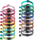 18Pcs Reflective Cat ID Collars with Bell Adjustable 19-32Cm, Soft Nylon Adjusta ★ADJUSTABLE SIZE: 18pcs/set, come with 18 different colors, easy identification. Fits 7.5 to 12.5inch neck size, collar is 2/5 inches wide. ★GREAT MATERIAL: Made of lightweight and flexible nylon fabric material, the kitty identification collars is soft and lightweight, which put little pressure around the cat's neck; Very comfortable for your cat to wear and can fit most pets. ★TARGET AUDIENCE: Great for puppies from birth to 8 weeks old, also can be used for cat, kitten or other small animals whose neck girth is within this size can wear. ★SAFETY BUCKLE: Our puppy ID collar has a safety quick buckle. Buckle will quick release automatically under pressure if your puppy got stuck up in something, which is very safe for your puppy. ★REFLECTIVE STRIP: There have reflective strips and tiny bells on each collar, make it easy to keep up with the pups in the dark.