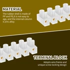 Parts List: 18× Terminal Block Highlight description: Stable and Reliable: The terminal block is crafted from quality materials. The inner part of the terminal block consists of electroplated zinc alloy screws and copper zinc alloy terminals, featuring good conductivity and stability Quality: The terminal block features PP, PE rubber shell, white and transparent. It has good insulation, not easy to aging. The internal features zinc alloy connection post Wide Application: The terminal block features Voltage 380V, applicable wire: 1.5mm2-2.5mm2. Widely used for motors, electrical control, power supply, home appliances, lighting, machinery and other power cord connection parts Easy to Install: The terminal block is easy to install. Simply strip the wires, insert the terminal strip, tighten the screws, no need to weld. Also, you use scissors or other tools to cut the screw terminal block into the small parts for your needs Safe to Use: The terminal block adopts reliable screw connection technology and the terminal block adopts crimping frame crimping and screw locking design. Make the wiring connection safe and reliable Detailed description: Description. The terminal block features excellent stability and conductivity. Designed with PP and PE rubber shell that has good insulation, not easy to aging. It can serve you for a long time Key Features Cuttable: The terminal block can be cut according to your needs. You can use scissors or other tools to cut the screw terminal block into the small parts Specification Name: Terminal Block Material:PP+PE Size:10.9×1.68×1.25 cm Note: 1. There may be slight differences between the picture and the actual color of the commodity. We will try our best to show you the exact color 2. Please allow slight dimension difference due to manual measurement