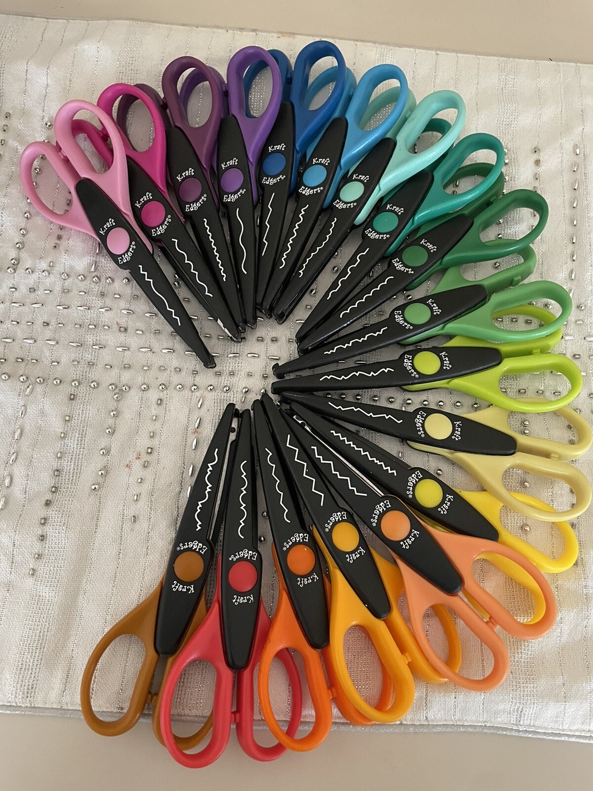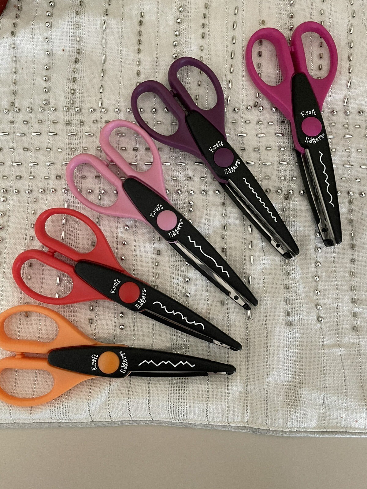 Fun craft scissors for any project!! Kid friendly also. Bright colors also light up any craft room. I used these for decor when I wasn’t crafting with them.