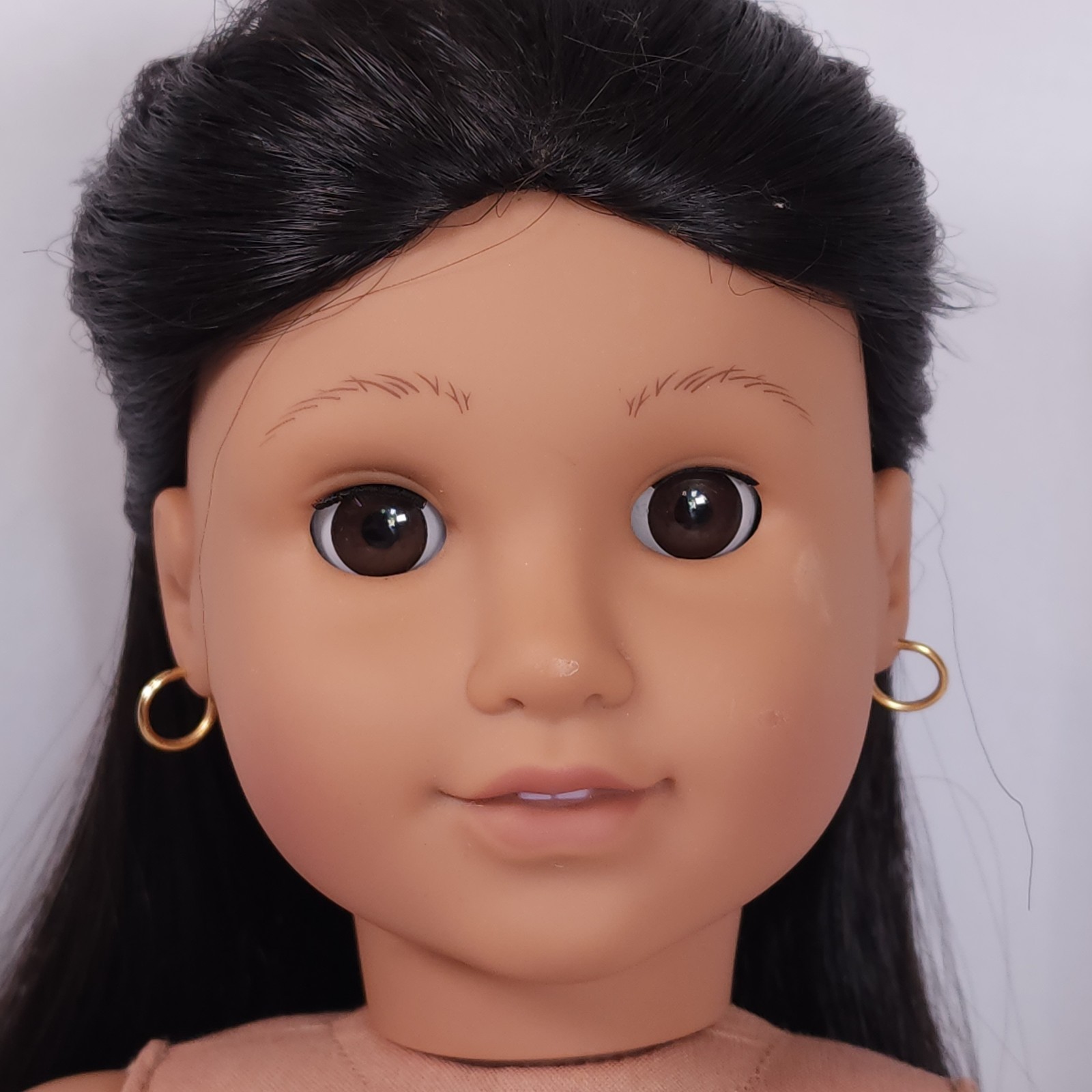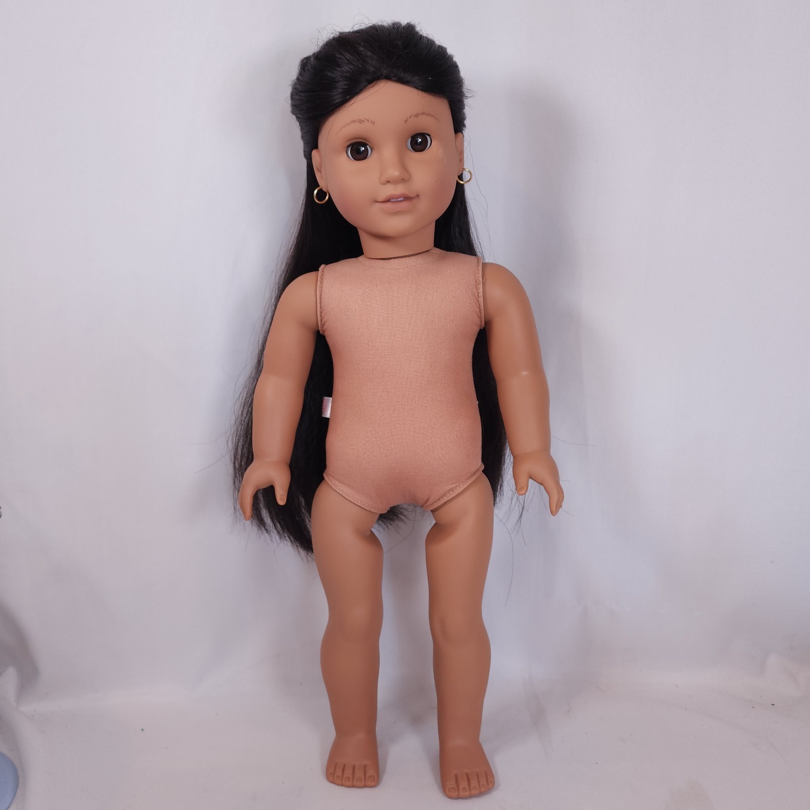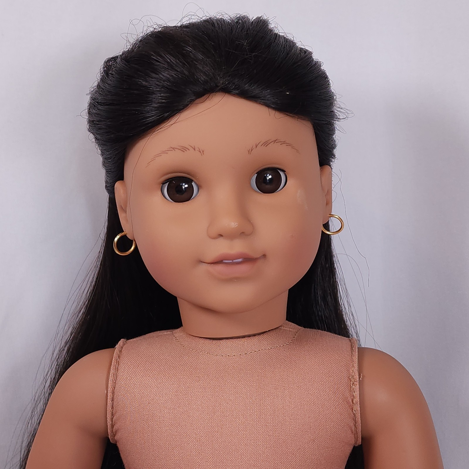 18" American Girl Doll Josefina Montoya: Hispanic/Latina Heritage, Straight Black Hair, Medium Skin, and Brown Eyes. Marked American Girl LLC on the back of her neck, with a short double body tag, probably from the early 2000's. Josefina is in overall good condition, with beautiful long black hair. It's uncut and easy to brush and style, perhaps a bit of dryness at the ends, not bad at all. Some shine/smudge marks from handling, including a couple on her cheek and tip of her nose, and some kind of discoloration on her cloth body near her neck in back. Somewhat loose limbs, long, uncut neck strings. One eyelash retracts when she’s laid down, comes out okay when you stand her up, but you may want to add a bit of glue or something to keep it out. Both eyes do close fine. No clothes included, though she does have her permanent gold earrings in. Please see all pictures for exact cosmetic condition and other details, and ask any questions before purchasing. She will be very carefully packaged for her journey to you. We are a husband and wife team with a growing family, and greatly appreciate your support of our small business. Please browse our eBay store for a variety of other American Girl items. We hope you enjoy this beautiful doll!