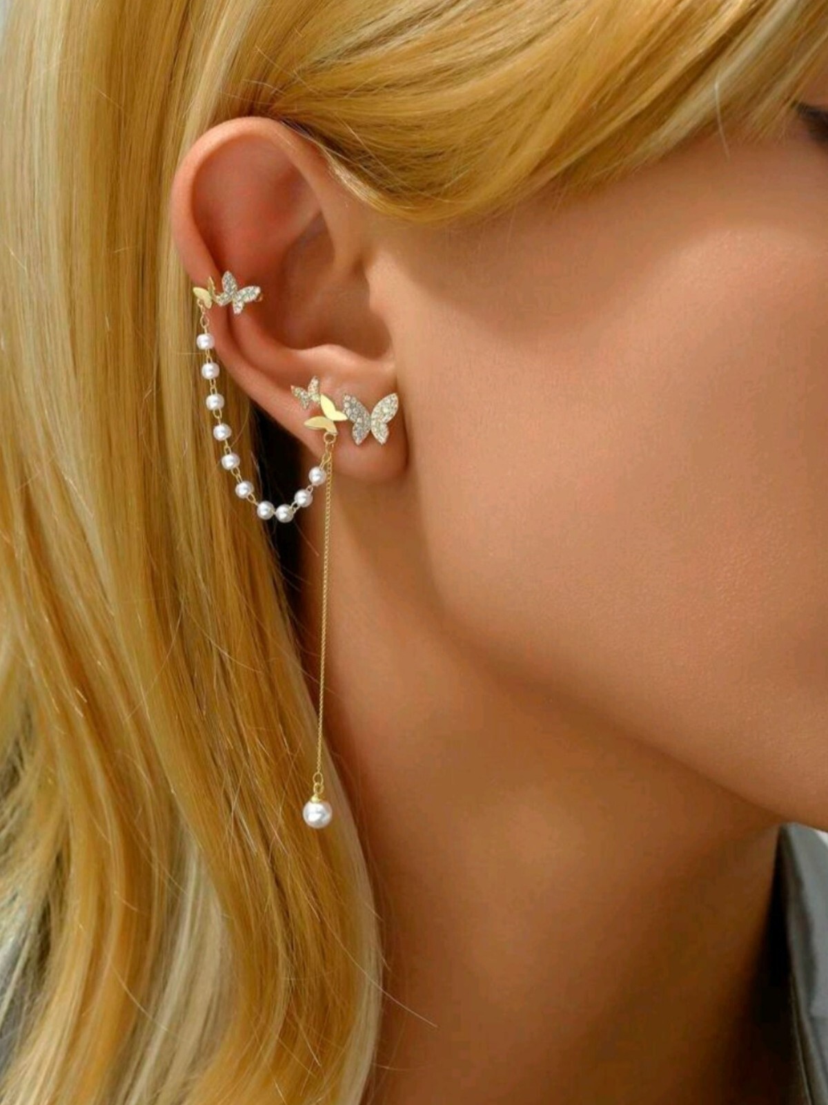 Dare to stand out with this 18k gold-plated Elegant Tassel Butterfly Pearl Cuff Stud Earring—a masterpiece of unique design and high-end craftsmanship. Featuring a delicate butterfly perched amidst cascading pearl tassels, this earring embodies movement, grace, and luxury in every detail. Designed to wrap elegantly around your ear, the cuff stud style ensures a secure fit while making a bold statement. It’s not just jewelry—it’s a conversation starter, perfect for elevating evening ensembles or adding a touch of magic to everyday looks. Step into the extraordinary and let your style take flight. Add this one-of-a-kind treasure to your collection today and make every moment a statement.