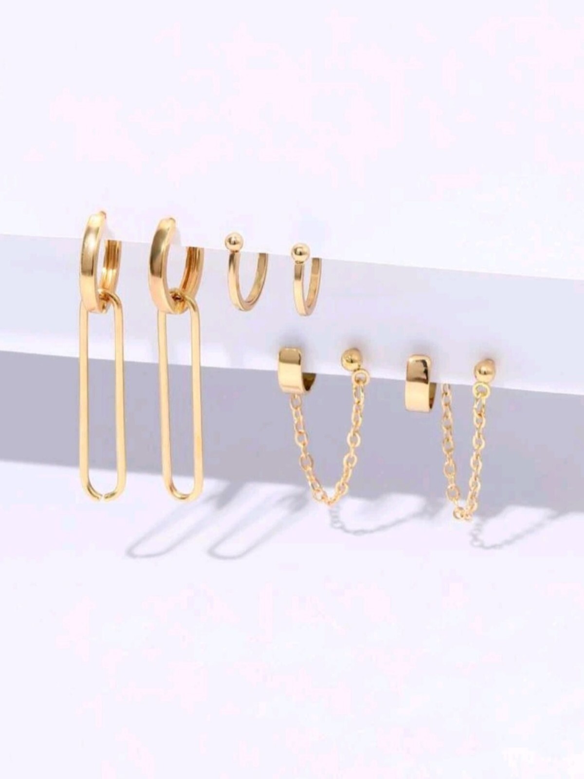 Transform your jewelry collection with our stunning 6pcs 18K Gold Plated Creative Chain Decor Geometric Earrings! These eye-catching earrings are designed for the modern woman who loves to make a statement while keeping it chic and sophisticated. Each piece in this versatile set features unique geometric shapes and intricate chain designs, perfect for adding a touch of contemporary elegance to any outfit. Whether you’re dressing up for a night out or elevating your everyday look, these earrings are perfect for every occasion. Mix and match them to create your own unique style, or wear them individually for a subtle yet stylish accent. Crafted with high-quality materials and plated in luxurious 18K gold, these earrings are not only stunning but also durable and designed to last. Step out in confidence and showcase your individuality with this fabulous earring set. Don’t miss out on the chance to enhance your daily decorations—grab your set today and let your style shine!