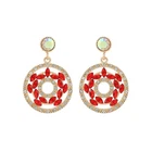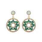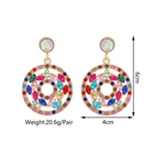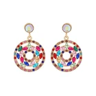 These 18k Gold Rainbow Mosaic Drop Stud Earrings by Zan Kash are a stunning addition to any jewellery collection, perfect for a variety of occasions such as engagements, weddings, and birthdays. Handmade in Great Britain, these earrings feature a multicolour rainbow crystal as the main stone, set in stainless steel for durability. With a bohemian theme and ornate design, these earrings are sure to make a statement. These stunning gold-tone drop earrings showcase an intricate mosaic-style circular design featuring a vibrant array of multi-coloured crystals. The open-work frame is meticulously set with marquise-cut stones in a radial pattern, including shades of ruby red, emerald green, and sapphire blue. Topped with a large, iridescent Aurora Borealis (AB) crystal stud, these earrings offer a bold, bohemian aesthetic that perfectly balances vintage charm with a modern rainbow palette. Key Features Intricate Open-Work Design: Features a large, circular filigree-style drop with an open centre, creating a lightweight yet high-impact visual. Vibrant Marquise Crystals: Decorated with a radial arrangement of almond-shaped stones in a full spectrum of rainbow colours. Iridescent Aurora Borealis Studs: Each earring is suspended from a circular post set with a large, shimmering AB crystal that reflects multiple hues. Detailed Pavé Border: The outer and inner circular rails are accented with tiny, round-cut colourful crystals for added sparkle and texture. Warm Gold Tone Finish: Crafted in a polished yellow-gold-coloured metal that complements the rich jewel tones of the crystals.