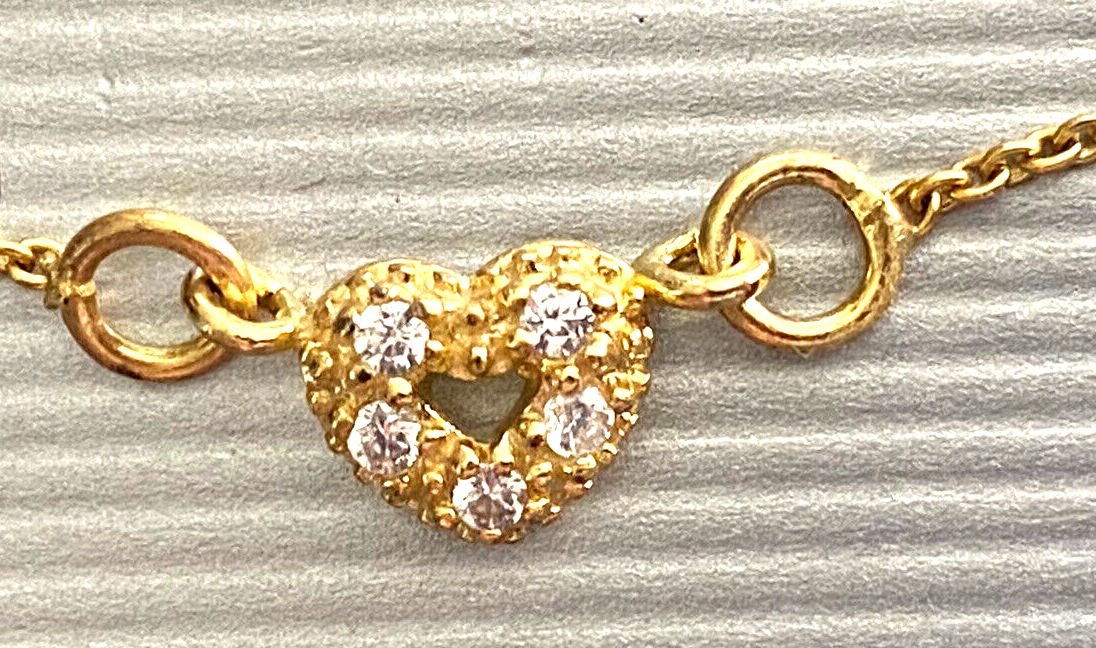 18kt Gold over 925 Sterling Silver Rhinestone Heart Ankle Bracelet! adjustable New condition Up to 10" Ebay sellers since 2001 Items come from a smoke free, pet free store! Your satisfaction is our priority! We want your ebay experience to be care free.