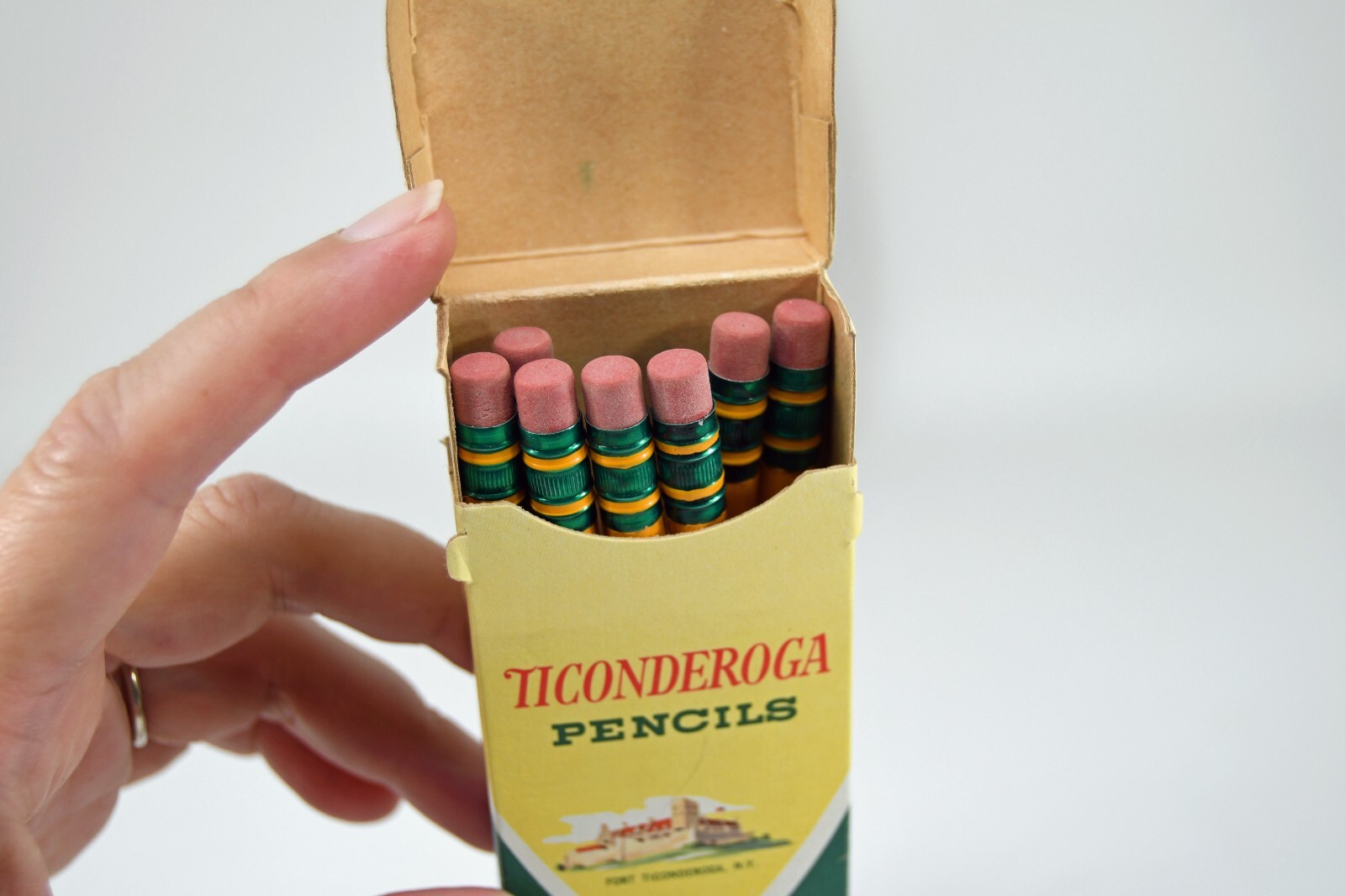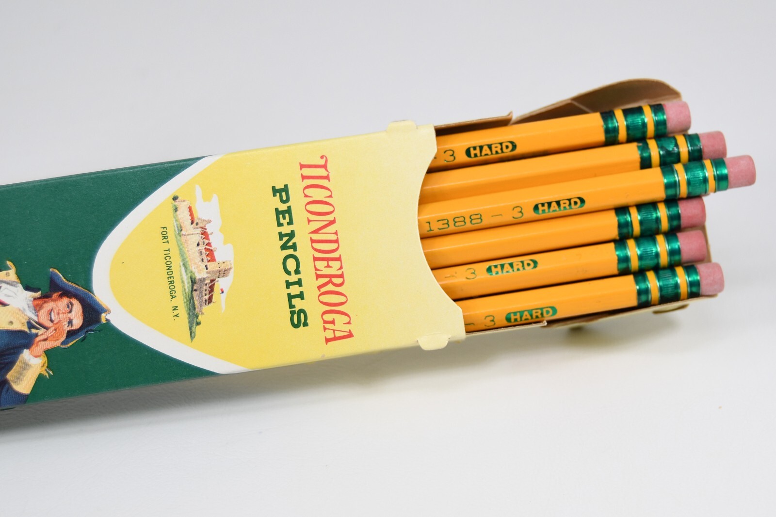 19 Vintage Ticonderoga Pencils No. 1388 3 Hard New in Two Boxes USA Made Vintage pencils are unused in box. One box has only seven pencils, and one of those is damaged on top. See photos. All are unsharpened.