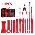 🚗Features Multi-use Purposes: 19pcs specially designed trimming tools, excellent for automotive, marine, furniture or aircraft trim removal and installation, including door panels, moldings, window trims, clips, fasteners, emblems, panels, radios, ect. Meets All Needs: The profectional tools can fit all types of car modifications. And its ergonomic design and lightweight help you efficiently handle various interior and exterior car trimming with ease. Premium Quality Material: Made of durable and impact resistant nylon fiber, won't break like the ABS ones. It is eco-friendly, non-toxic and breakage-proof, abrasion and corrosion resistant for long lasting durability. Harmless to Car: The moderate curve design is anti-scratches and harmless to car paint. Easy Storage and Higly Portable: Come with nice zipper storage pouch. each tool can be stored properly so that you don’t misplace or lose them. The special hand strap desgin can free your hands for other works and improve its portability. 🧰Specification Interior Trim Disassemble Tools: Material: POM+nylon Color: Red/Blue Roof Light Clamp: Material: Polypropylene handle + metal manganese steel Color: Red/Blue Length: Approx. 23.5cm Width: Approx. 3.2cm Large opening: Approx. 19mm (Caliber) Small opening: Approx. 11mm (Caliber) Release Tools: Material: Polypropylene handle + metal manganese steel Color: Red/Blue 6 Inch: full length: 225mm, opening caliber: 9mm 8 Inch: full length: 305mm, opening caliber: 8mm, rod diameter: 8mm Needle Remover: Material: Stainless Steel 301 Color: Metallic Key Tools: Material: Stainless Steel 301 Color: Metallic Length: Approx. 7cm Width: Approx. 2.5cm Multi-Function Tools: Trim Removal Tools Clip Removal Pliers Precision Hook Pick Stereo Removal Tools U-shaped Removal Tool Car Terminal Removal Tools Upholstery Fastener Removers 🎁Package Included 11 x Interior Trim Disassemble Tools 1 x Roof Light Clamp 2 x Release Tools 3 x Needle Remover 2 x Key Tools