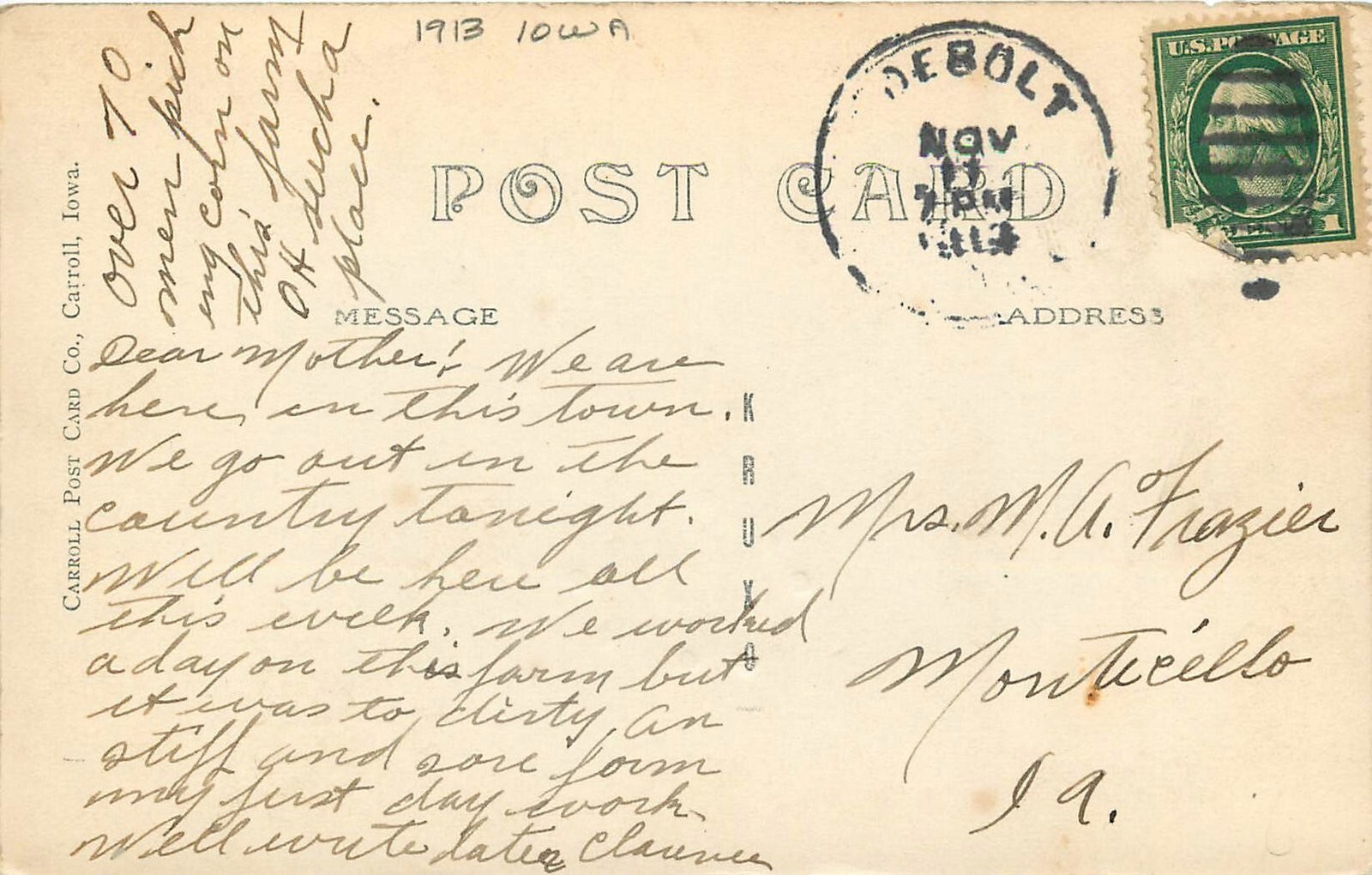 A Vintage Real Photo postcard as described in title, additional info is below Publisher-photographer--Artist----Carroll Postcard co card #----- no