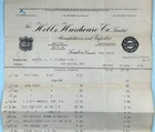 1921 Invoice for various hardware items and home goods, from The Hobbs Hardware Co. London Ontario Canada.