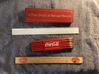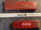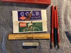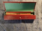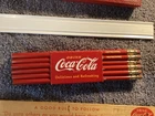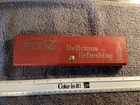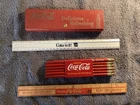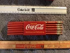 This is a rare find for Coca-Cola enthusiasts and collectors alike. A complete set of 1930s Coca-Cola pencil box with one dozen pencils and two rulers. The pencil box is in its original state and has not been refurbished. It features the iconic red color and Coca-Cola logo, making it a great addition to any collection. The set was created in the United States and is an original piece from the 1930s. It is perfect for those who appreciate vintage advertising and Coca-Cola history. This sign is a must-have for any serious collector and is sure to impress any Coca-Cola fan.