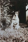 3.25" x 5" Black and white photo Vintage black and white photo finished by Kodak photo Service in Anderson, Indiana. Rat terrier or likely close breed of dog, you will likely be better at this identification than I. Cute little fellow, posed by himself outside in warm light.