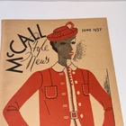 This rate vintage McCall's news magazine/booklet from June 1937 features Paris style patterns for evening gowns, dress suits, and more. The patterns are specifically designed for women and were made in the United States. As it states " Insist on a McCall pattern, it's the short cut to Paris style" The magazine is an original vintage piece and is not a reproduction. It shows the current styles available in McCall's patterns. Some age issues with slight splits inn the binding as shown in the photos.