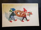 1940 GNOMES w CAKE VINTAGE CHRISTMAS POSTCARD ESTONIA ESTONIAN