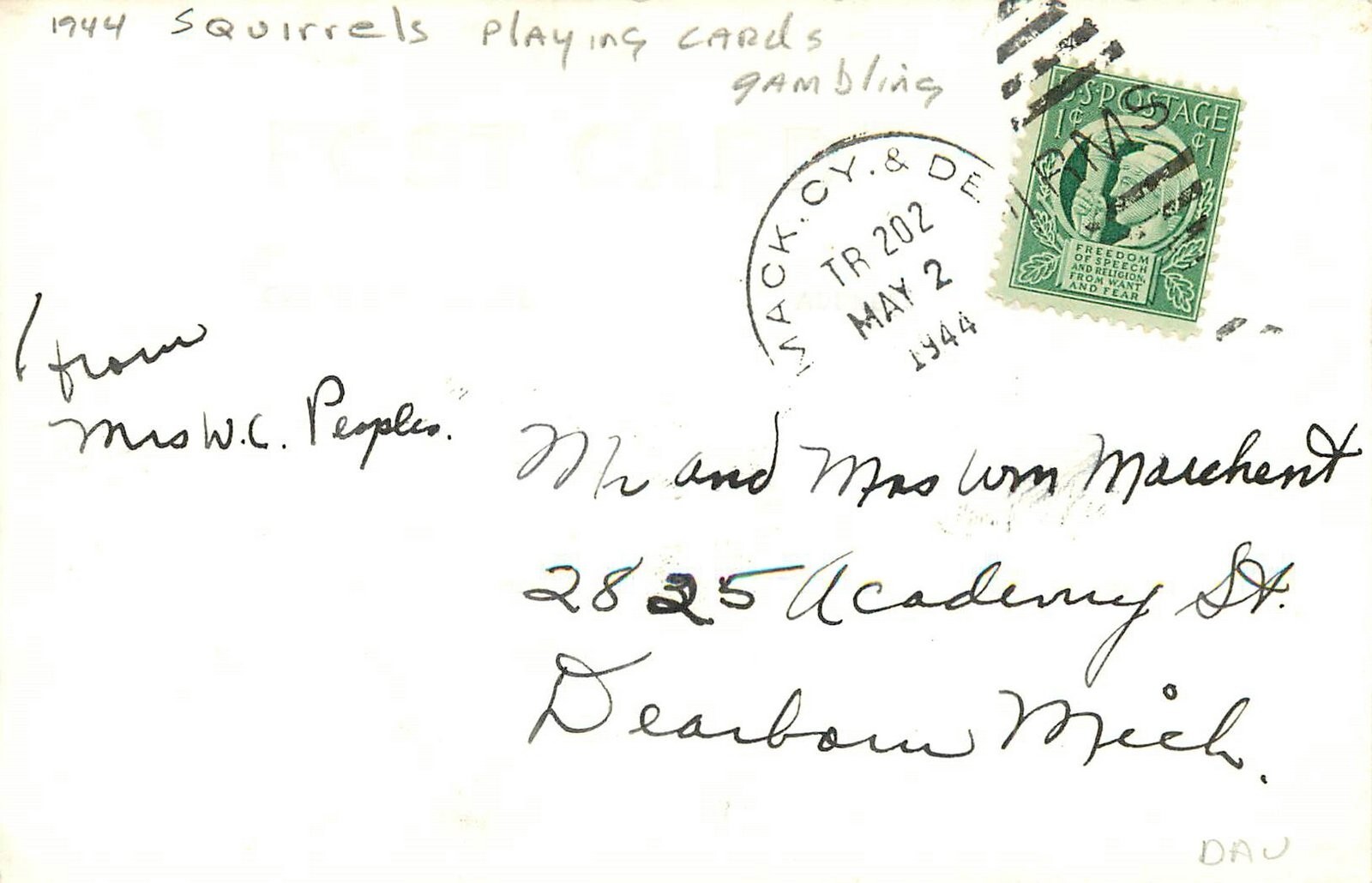Home1944 Squirrels playing cards gambling Postcard 25-2011