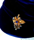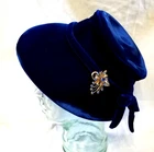 1950s Vintage Blue Velvet Fashion Hat w Ribbon Bow Gold-Tone Floral Pin Brooch DESCRIPTION: Offered is vintage ladies fashion hat made of blue velvet. Wide brim stretched over wire so that it maintains its shape. Features a blue velvet ribbon with gold-tone floral brooch pin accent. Perfect for the re-enactor or just for fun. MEASUREMENTS: Vintage, hat is one size fits most. CONDITION: Vintage, in excellent estate condition. One rub thru fabric on wire edge, see close up, it is on underside rim and not easy to find. See pictures! POSTAGE: Buyer pays USPS Ground Advantage for 1 pound 8 ounces packaged weight.