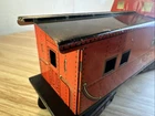 MARX O GAUGE ATSF CABOOSE 1951 Seven inch series Eight wheel design Missing one coupler ? FROM HUGE ESTATE SALE ITEM WILL BE SECURELY WRAPPED AND QUICKLY SHIPPED IN ONE BUSINESS DAY SOLD AS IS CONDITION