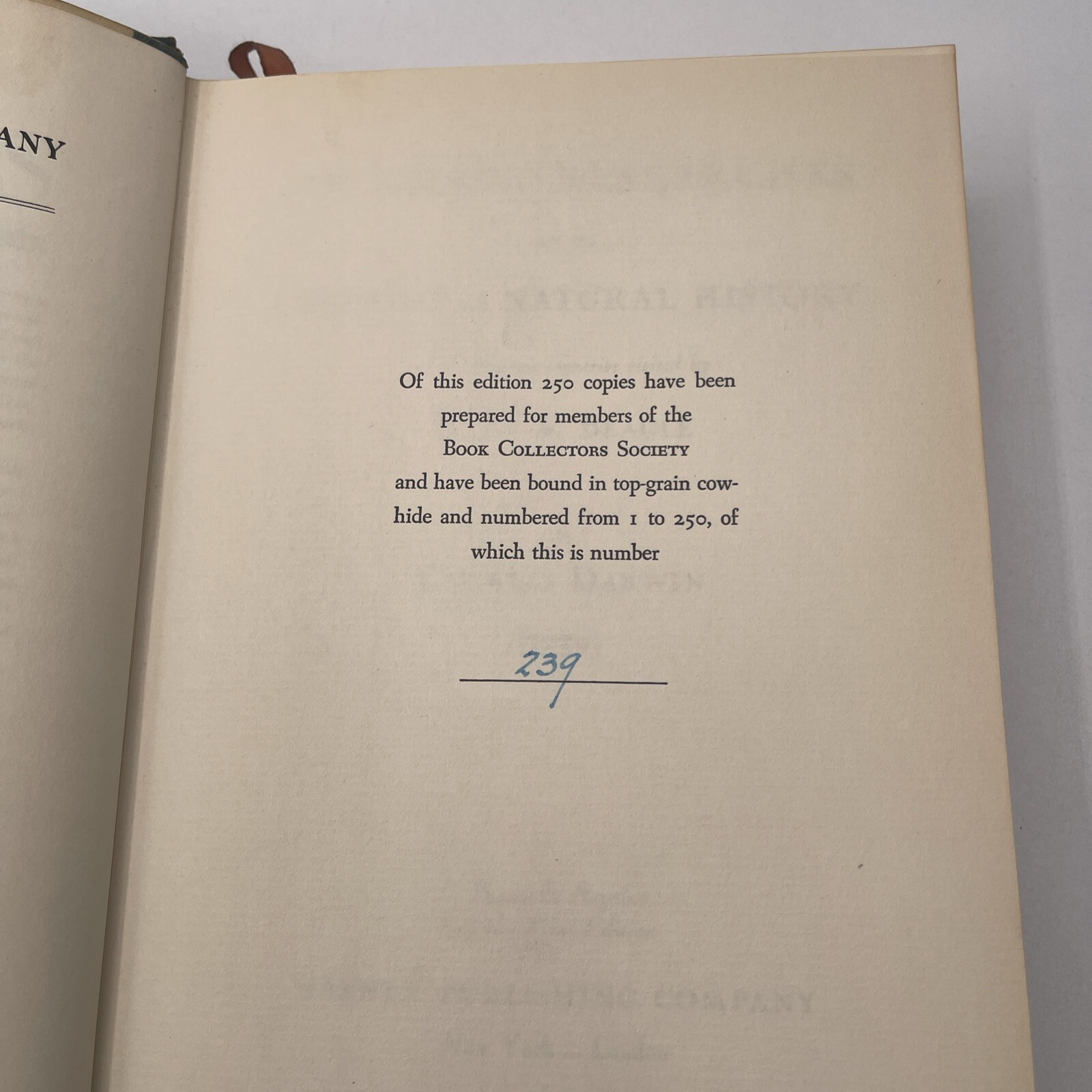 Explore the depths of scientific literature with the "Journal Of Researches Into The Geology & Natural History / 1952 Limited Darwin." This facsimile edition offers readers a glimpse into the scholarly world of Charles Darwin, renowned for his contributions to the fields of geology and natural history. Published by Hafner Publishing Company in 1952, this piece is not just a book but a limited edition collectible, complete with numbering, making it a unique treasure for enthusiasts and collectors alike. Encased in a luxurious leather binding, this edition is presented in English and is an homage to the original works of Darwin. It delves into the intricacies of science and medicine, specifically focusing on geological studies. For aficionados of antiquarian and collectible books, this title is a cornerstone of scientific literature, merging historical significance with the allure of a limited edition. ~650 pages clean interior tight binding VG+ / limited to 250 this is #239