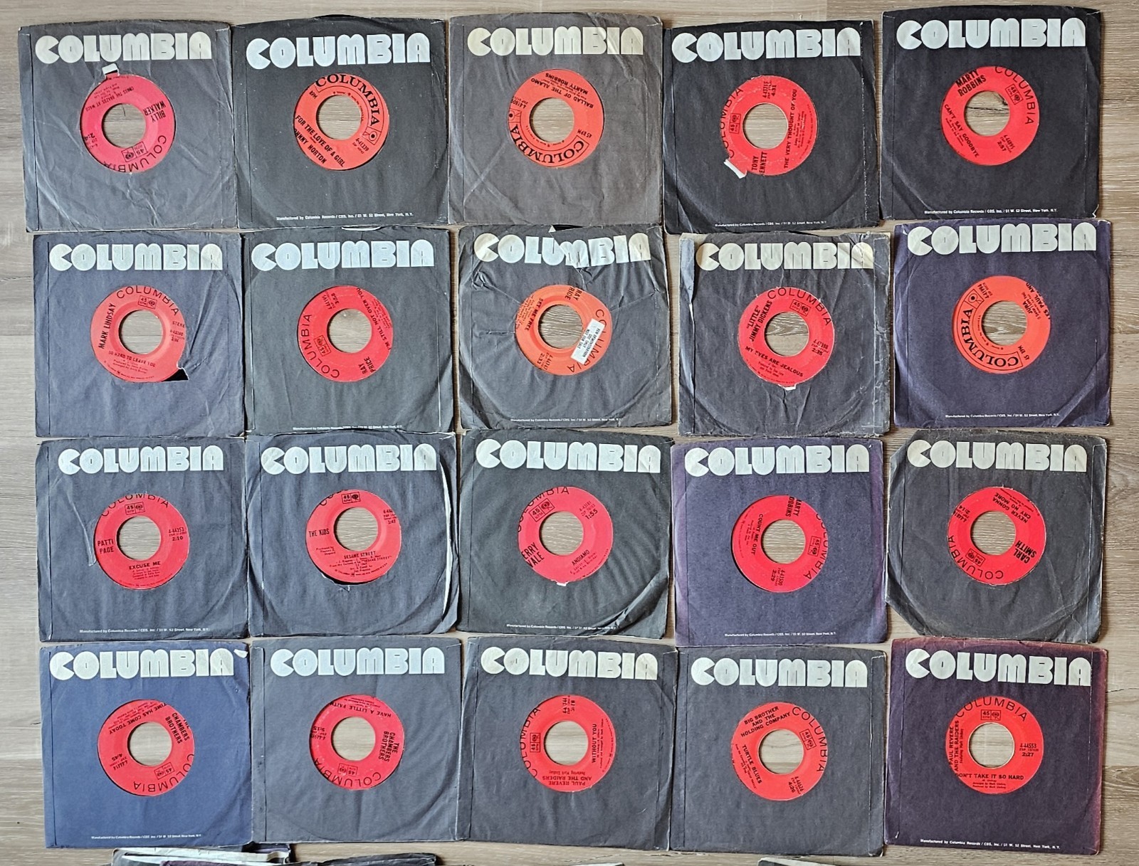 Vintage 1950s-70s Columbia Records Lot of 33 45 RPM Vinyl with 10 Sleeves VG-EXMT Condition