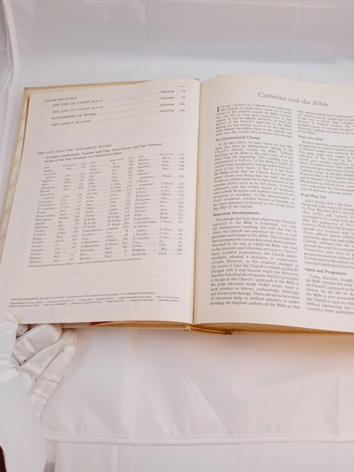 This vintage hardcover book is a must-have for any Catholic book collector. Published by Catholic Book Publishing in 1963, it contains the complete text of the Holy Bible in English. The book is well-preserved and has a beautiful cover. It is a perfect addition to any collection or as a gift for a loved one who cherishes the Catholic faith.