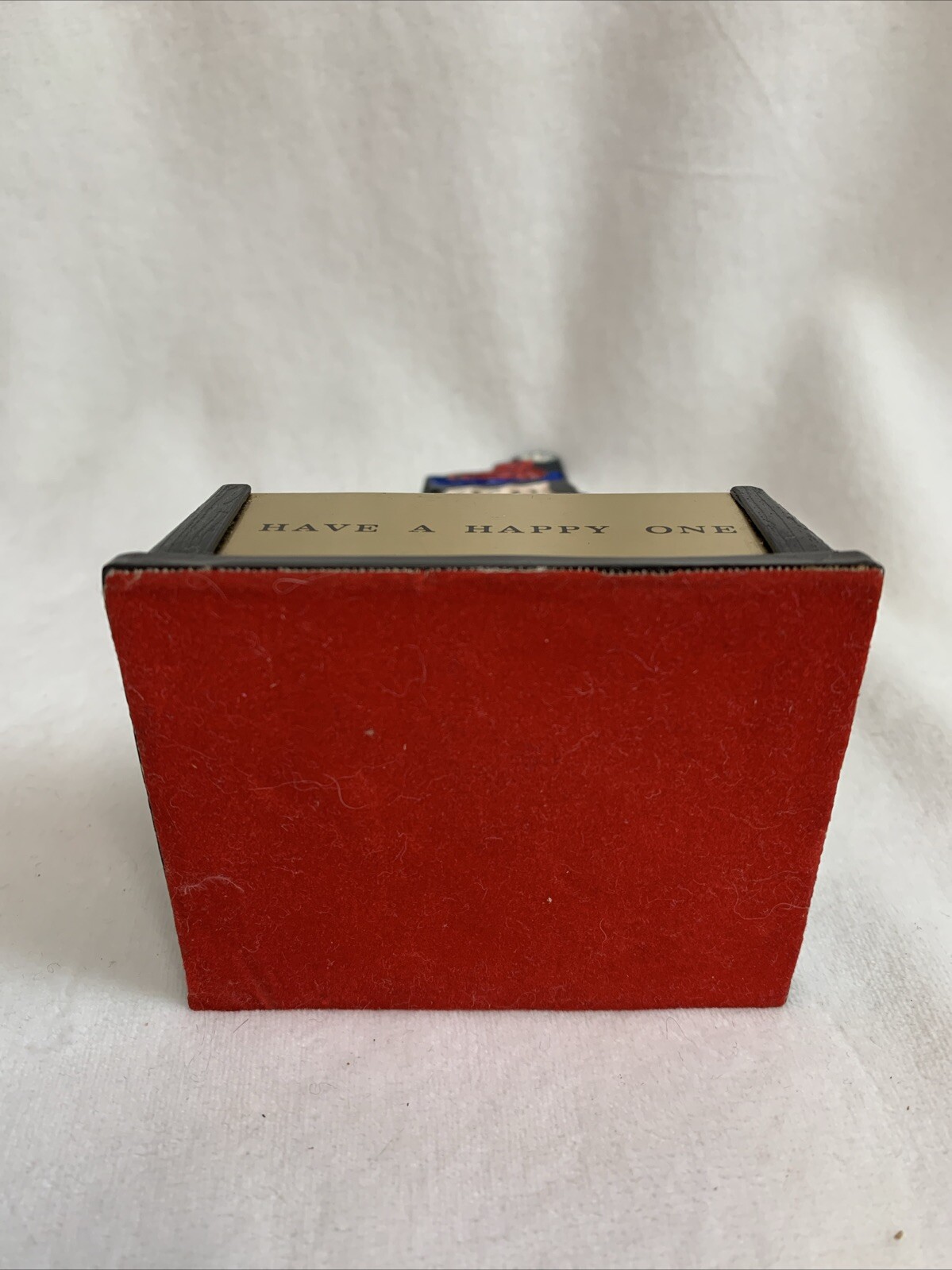 This vintage 1970's Peanuts Lucy "Have A Happy One" Aviva Handpainted Trophy is a 3" tall plastic and metal figurine featuring the character Lucy Van Pelt from the Peanuts franchise. Manufactured in Hong Kong, this multicolor item is part of the Animation Studio United Feature Syndicates. The trophy statue figurine showcases cartoon & TV characters, specifically from the Charlie Brown Peanuts TV show. It measures 5" in height, 2 1/2" in width, and weighs 6oz. She’s wishing all “ Have A Happy One”! Perfect for a collector of the franchise. H1-22