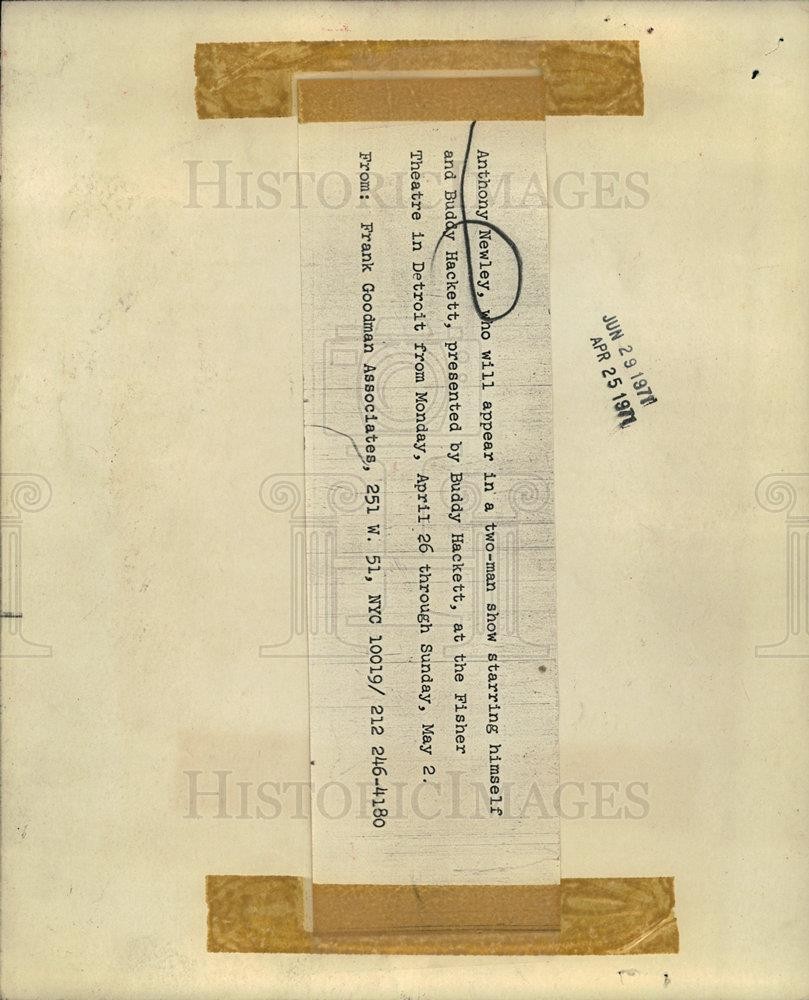 ebay template Note: Please study the images carefully to determine the condition of this vintage photograph, as it may not be in perfect condition. It may contain wrinkles, cracks, and possibly even tears due to its age and how it was handled before it got to us. A scanner may interpret colors and contrast differently than human eyes will, so it is possible that the actual photograph may be slightly darker or lighter in person. This vintage photograph is offered for sale as a collectible item and conveys no transfer of copyright. 1971 Press Photo Anthony Newley Fisher Theater Detroit - dfpb14747 Anthony Newley, who will appear in a two-man show starring himself and Buddy Hackett, presented by Buddy Hackett, at the Fisher Theatre in Detroit, Michigan. Photo measures 8 x 10 inches. Photo is dated 06/29/1971. PHOTO FRONT PHOTO BACK Historic Images Part Number: dfpb14747 FAQs Q: Can I just download a digital version instead? A: No, we sell only vintage originals and do not make or distribute any copies, including digital ones. Q: Do you combine shipping and invoices? A: Multiple photos won on the same seller ID combine automatically through the eBay checkout process. If you encounter problems with this, send us a message via eBay messaging and we will send you an invoice. Due to eBay limitations, we cannot combine items won on our different seller IDs for a single shipping charge. Q: How quickly do you ship the items once paid? A: We ship within one business day after your payment clears. If you do not receive an "order shipped" email from us by the close of the second business day from submitting payment, please e-mail us via eBay messaging. Q: How do you make sure my photograph arrives safely? A: We package each order between two cross-corrugated pieces of cardboard to ensure that the package is as difficult to bend as possible. We then wrap each order in a plastic sheet to help protect against moisture. We want you to rest assured that we take every precaution to ensure that the photograph you receive will be in the same condition in your care as it was in ours. Q: Will the "Historic Images" watermark be on my photo when I receive it? A: No. This is a digital watermark we use to protect our images. It is not printed on the photo. Q: What are your office hours? A: eBay for us is a business, and a very fun one to be in! We are open M-F 9 to 5 (CST). Therefore, we do not return e-mails and phone calls over the weekend. We observe the following holidays: New Years Day, Memorial Day, Fourth of July, Labor Day, Thanksgiving and the day after Thanksgiving, Christmas Eve and Christmas Day. Q: Where did all these vintage photos come from? A: These original vintage photographs are from various news service and newspaper photo archives from locations around the country including: Boston, Detroit, Tampa, Chicago, Denver, Seattle, New Orleans, Milwaukee, Portland, Spokane, and more. We do not copy or reproduce any photographs -- every item is a unique vintage piece that was housed in a news archive. Q: Can I use this photograph in my book/blog/website? A: The short answer is no. There is no transfer of copyright for republication or reproduction with these photographs when you purchase them, and only photographs taken before 1923 are currently automatically in the public domain. Permission from the copyright holder, which usually can be identified from the back of each photo, must be sought to republish or reproduce the image for any purpose. Q: Do you relist items (in case I miss an auction ending)? A: Auction items that receive no bids are relisted in our store (historicimages-store on eBay) as a fixed-price item and at a higher price than the starting auction price. Q: Do you leave feedback? A: Yes, we always leave feedback for buyers. Our software monitors when our buyers leave us feedback, then notifies us that we can leave feedback for the buyer. Rest assured, if you leave feedback, we will do the same! Check out our family of eBay IDs: historicimages01 Sports Photos historicimages02 Entertainment Photos historicimages03 Americana Photos historicimages04 International & War Photos historicimages05 Transportation Photos historicimages06 Photos of All Subjects historicimages07 Entertainment Photos historicimages08 Newsworthy Photos historicimages09 Entertainment Photos historicimages10 Sports Photos historicimages-store Our largest fixed-price selection historicimages-gallery Hand-picked photos Saturday night auctions About Us Historic Images was formed in September 2009, with a handful of scanners working out of a basement to digitize newspaper photo archives. We have since moved out of the basement, and we can now archive thousands of photos per day. Our company has worked with magazines and newspapers from Detroit, Boston, Denver, Seattle, Tampa, Chicago, and New Orleans, just to name a few. We are constantly adding to our inventory, and have assembled an archive of millions of photos to date. As our company evolved, we began our eBay business, which brings thousands of fresh auctions per week to the world's largest online auction marketplace. Our custom software systems and team of great employees allow us to efficiently scan and sell large photo archives online. At the very core of our company's DNA is a strong commitment to customer satisfaction and strict integrity for our product. Our promise to you is that we will do everything in our power to provide you a great buying experience. Copyright 2009 - Present, Historic Images, Inc. Sell Smarter with Kyozou. Inventory and Ecommerce Management