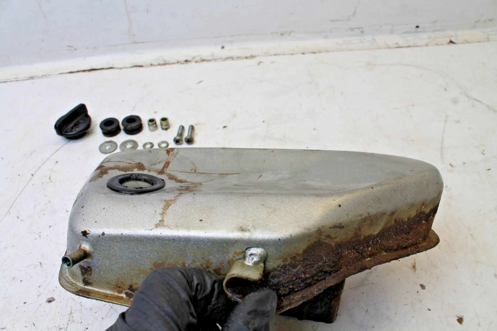 Big dent in the side. Cracked rubber mounting bushings. This part is from a 1973 Yamaha LTMX motorcycle. Frame serial# LT2-11897 engine# LT2-01690 Some parts from this LTMX may also fit Yamaha LT2 and LT3. Cross reference part numbers to confirm. Want to make sure this part fits before you order it? We will help you confirm fitment and compatibility! Send us a message or picture with your V.I.N. number (usually stamped into the frame), and we will look up your machine to make sure you get the correct parts! Why Shop With Us? - Quality Parts: We are very experienced and knowledgeable; we work to provide clear pictures and exact descriptions of items. - No Stock Photos: The part you see is the part you will receive. All parts are in stock and ready to ship. - Fast Shipping: Orders will ship out within 24 hours on business days. (Most items ship the same or next day.) Our packaging is secure and professional. - Open Communication: We answer all inquiries quickly and professionally. We can resolve ANY issue. Please message us with any questions or concerns you may have. - Feedback: We strive for Five-Star Feedback on all transactions. If you have any reason to leave negative feedback we ask that you please contact us first and allow us the opportunity to fix any problem there may be. We assure you that we can resolve ANY issue! ©Cycle Part Express SKU: 192 (1973 Yamaha LTMX Motorcycle)