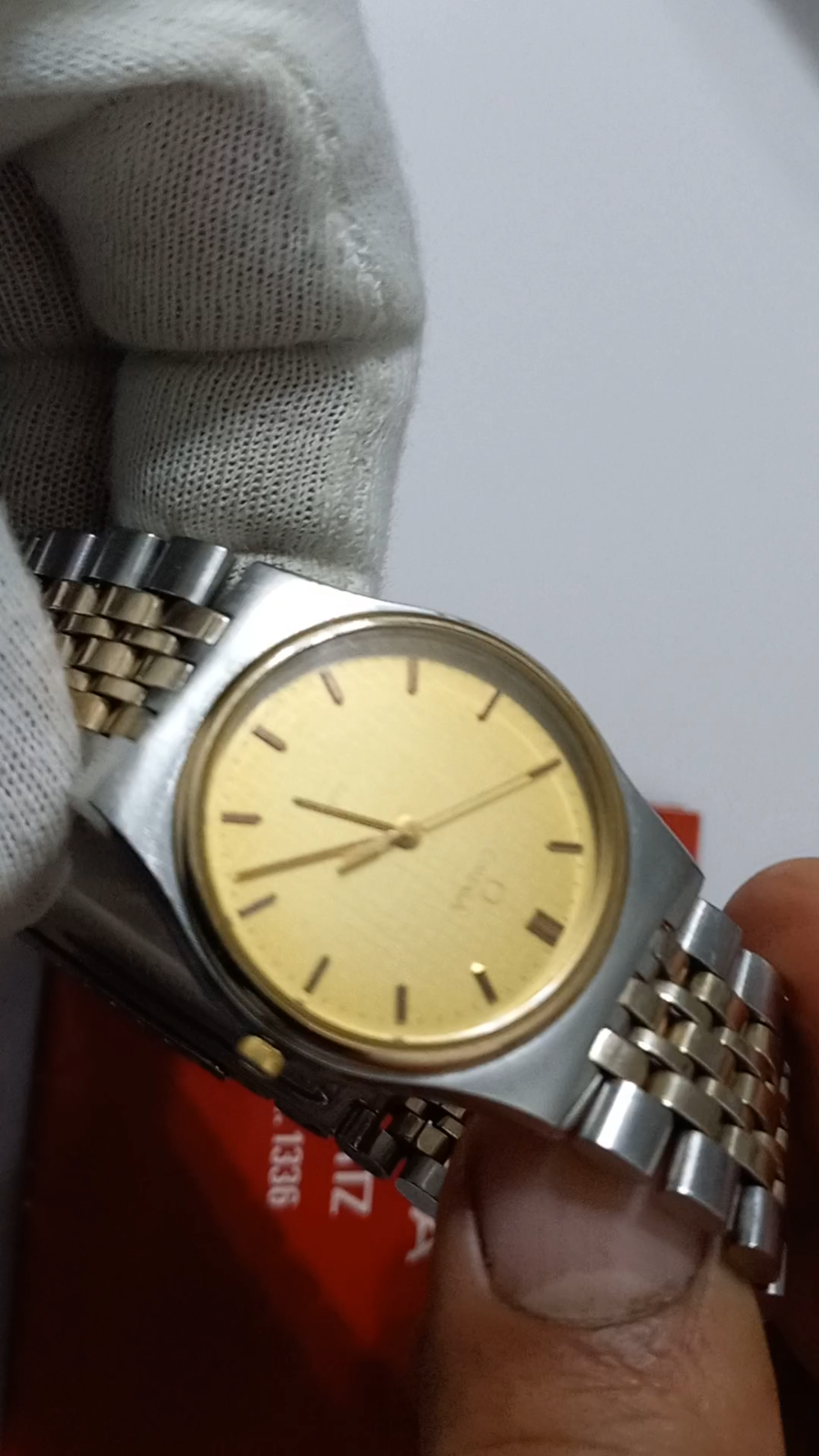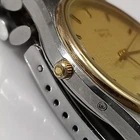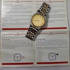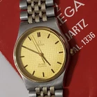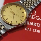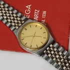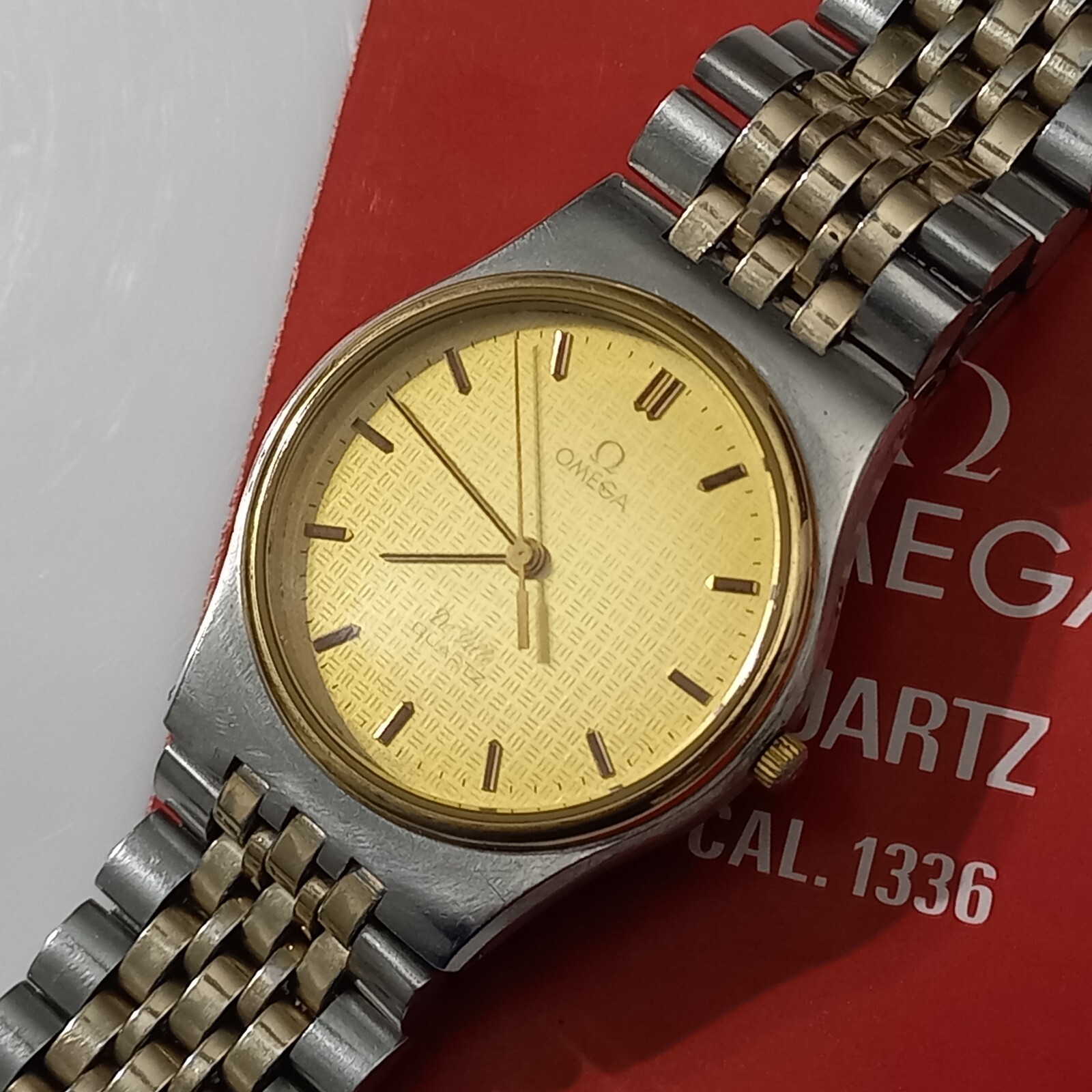 OMEGA DeVille Quartz Cal 1336 Omega DeVille quartz watch from the 1980s, featuring a caliber 1336 movement. It has a stainless steel case with a gold bezel. The original dial and hands are in excellent condition. The original crown is signed Omega but shows some wear. It includes its original two-tone (stainless steel and gold-plated) Jubilee bracelet, which fits a 7 3/4 inch wrist. The watch is running and keeping accurate time. An instruction booklet is included. Size: 33 x 39 mm excluding the crown We combine shipping. Terms & Conditions We are dealing with pre-owned/ used/ vintage timepieces. Our items are 100% authentic. All photos are taken by us. Buyers will receive the same item that is shown in the photos. We provide a full description and many photos of the item and we expect you to contact us for extra details. Shipping We ship international expedited shipping via DHL with tracking. Phone number is required by DHL for shipping. We ship from Lebanon. We combine shipping. We are not affiliated in any way with any of the presented brands. Buyer will have to pay any custom fees for releasing the item in their own country, this will effect delivery times. Check the custom fees in your country before you buy.