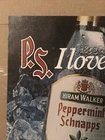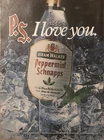 This vintage 1981 Hiram Walker Peppermint Schnapps magazine print ad is a must-have for collectors of distillery memorabilia. The colorful design features the iconic PS I Love You slogan and measures approximately 8"x11". This original piece is a rare find for fans of the brand and the United States distillery scene. The ad is from 1981 and is an original piece. It is a great addition to any collection of vintage advertising and distillery memorabilia. This item is perfect for those who appreciate the history of Hiram Walker and the distillery industry.