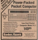 1982 "TRS-80 Power-Packed Pocket Computer" Radio Shack print ad 7x6.5”