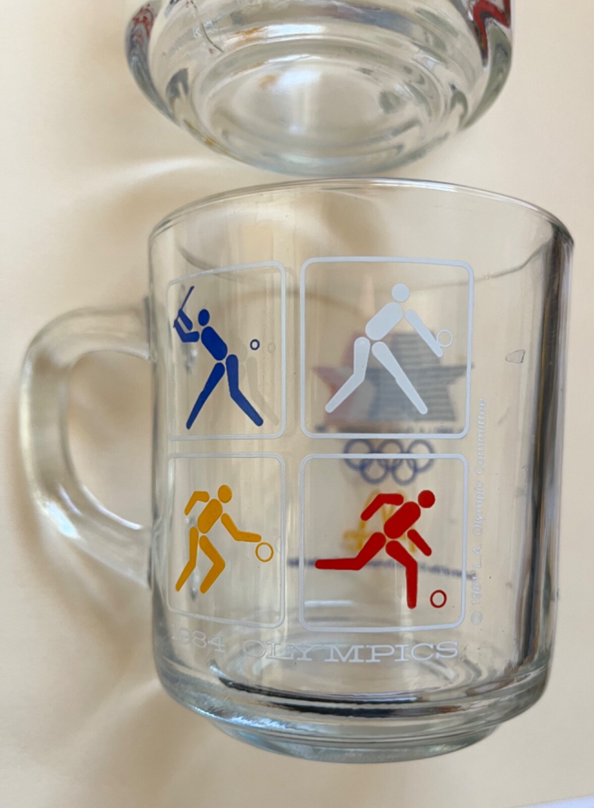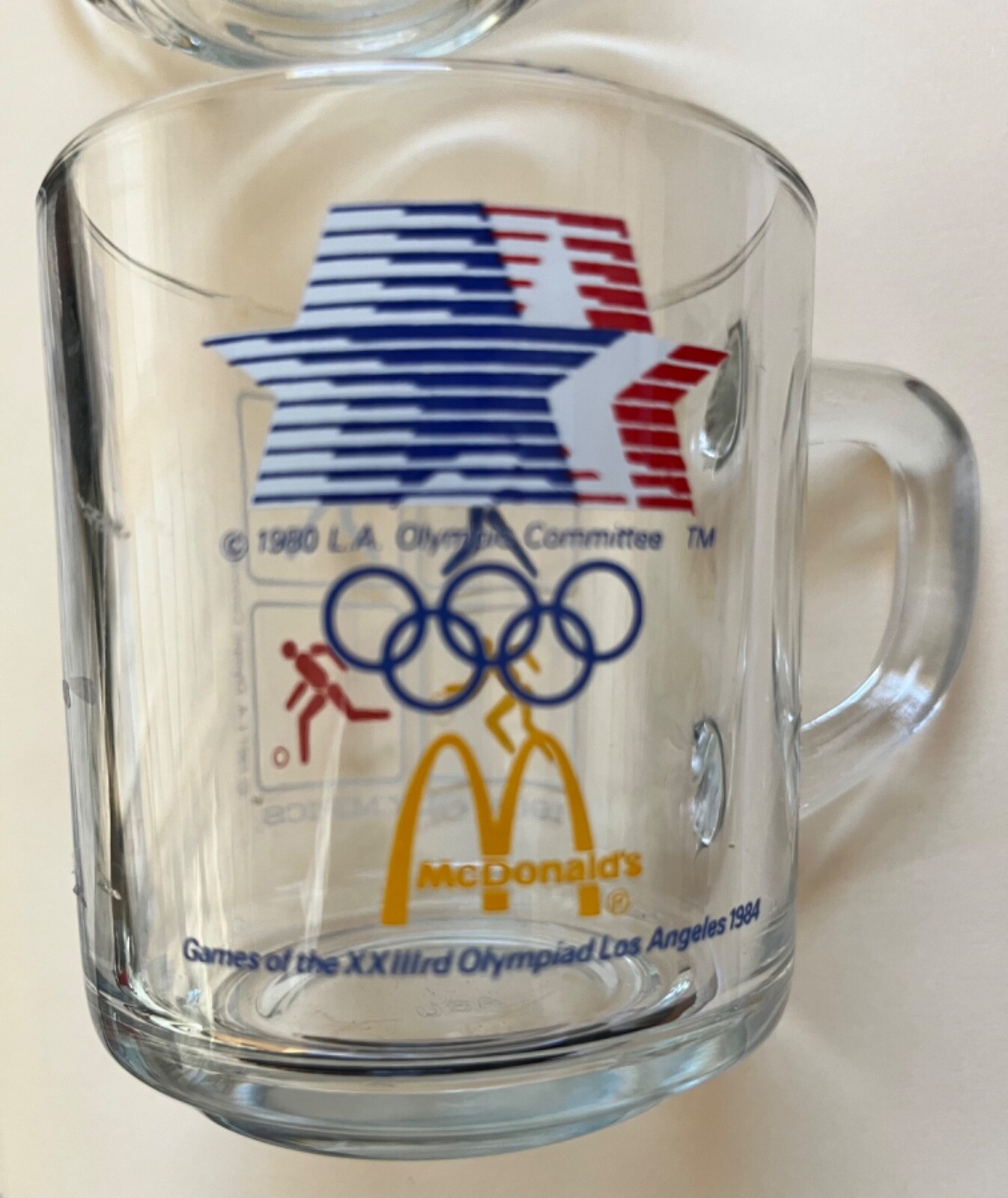 This lot of two glass coffee mugs is a perfect addition for any collector of McDonald's memorabilia. The mugs feature the iconic McDonald's coffee logo and were produced in 1984 to commemorate the Summer Olympics in Los Angeles, CA. The multi-color design and original/reproduction status make these mugs a unique and valuable find. The mugs were manufactured in the United States and have not been modified. They are featured in the Mugs & Cups and McDonald's categories, and are a great fit for anyone interested in restaurants and fast food advertising collectibles. Don't miss out on the opportunity to own a piece of history with these 1984 Summer Olympics Los Angeles CA Glass Coffee Mugs.