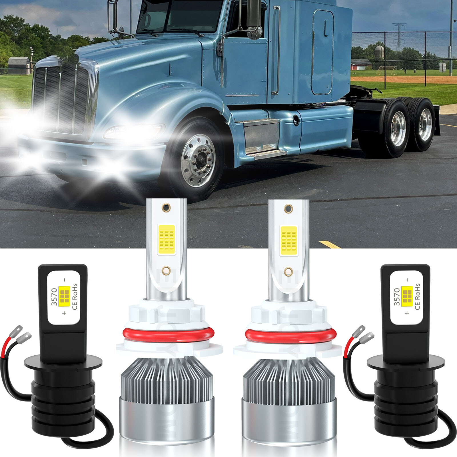 These LED headlights are a game-changer for my Peterbilt! The 6000K pure white light is super bright and crisp, making night driving so much safer. I love how they plug right in without any mods, and the aviation-grade aluminum keeps them cool even on long hauls. The fog lights cut through bad weather like a champ, and the IP68 rating means no worries about rain or dust. Way better than old halogens—super easy to install, and the 360° beam lights up everything. No flickering at all, even with my 24V system. Worth every penny for the visibility and durability!