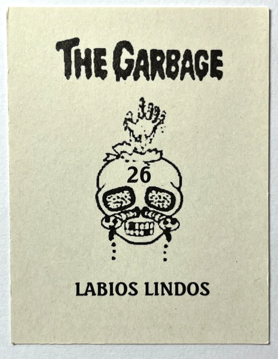 Plantilla Alegre GARBAGE PAIL KIDS CHARACTER: LARRY LIPS COUNTRY: PERU MANUFACTURED BY J. MERCHANTE YEAR: 1988 TYPE: STICKER SIZE: 6.6 x 5 cm ** MORE PASSION, MORE COLLECTIBLES ** SHIPPING WORLD WIDE WITH TRACKING CODE ** DO NOT FORGET CHECK MY OTHERS ITEMS FOR SALE AND COMBINED SHIPPING. ** SOTHERS001--026
