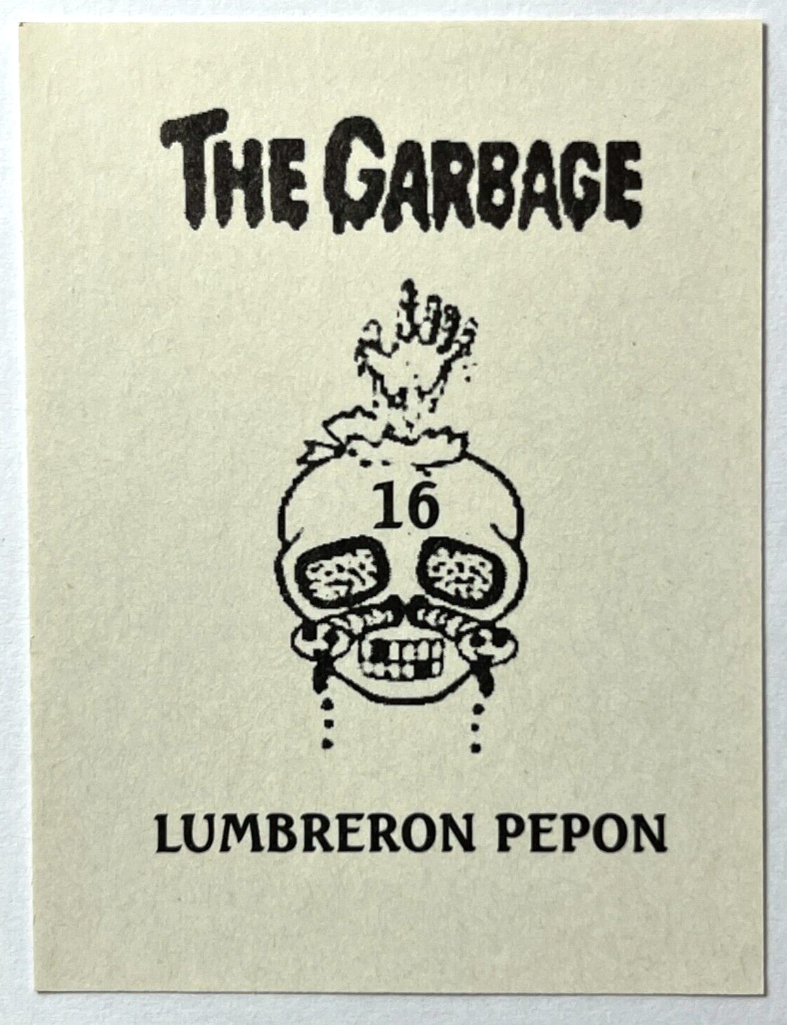 Plantilla Alegre GARBAGE PAIL KIDS CHARACTER: JENNY GENIUS COUNTRY: PERU MANUFACTURED BY J. MERCHANTE YEAR: 1988 TYPE: STICKER SIZE: 6.6 x 5 cm ** MORE PASSION, MORE COLLECTIBLES ** SHIPPING WORLD WIDE WITH TRACKING CODE ** DO NOT FORGET CHECK MY OTHERS ITEMS FOR SALE AND COMBINED SHIPPING. ** SOTHERS001--016