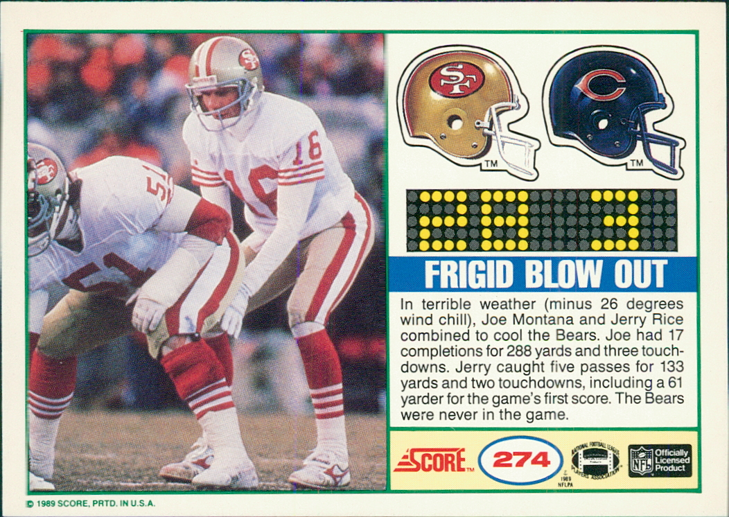 1989 Score - #274 Joe Montana Card ships same day. We are happy to combine shipping so please see our other listings. We also specialize in late 1970?s through 1991 Football so please check us out.
