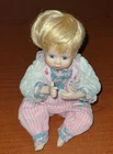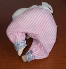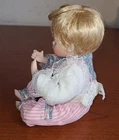 The Danbury Mint porcelain doll is a vintage collector's item manufactured in 1990. The doll is a girl with straight brown hair, blue eyes, and light complexion. She wears pink striped overalls and a floral top, and comes with clothing and accessories. The doll is made of porcelain and measures between 5 - 7 inches. It is an original collector's edition from the Danbury franchise. The doll is perfect for all occasions and is ideal for collectors of fantasy-themed dolls.