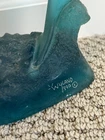 1990 SIGNED Robert Wyland Blue Lucite 9.5" Kissing Dolphins Signed Sculpture