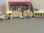 The 1993 Easter Express Wooden Train is a complete 20 piece set manufactured by International Silver Company. This collectible set features a primitive design with a multicolor Easter theme, making it a perfect addition to any holiday decor collection. Made of wood and originating from China in the 1990s, this vintage set is sure to bring nostalgia and charm to any train enthusiast or collector. The original box adds to its authenticity and display value.