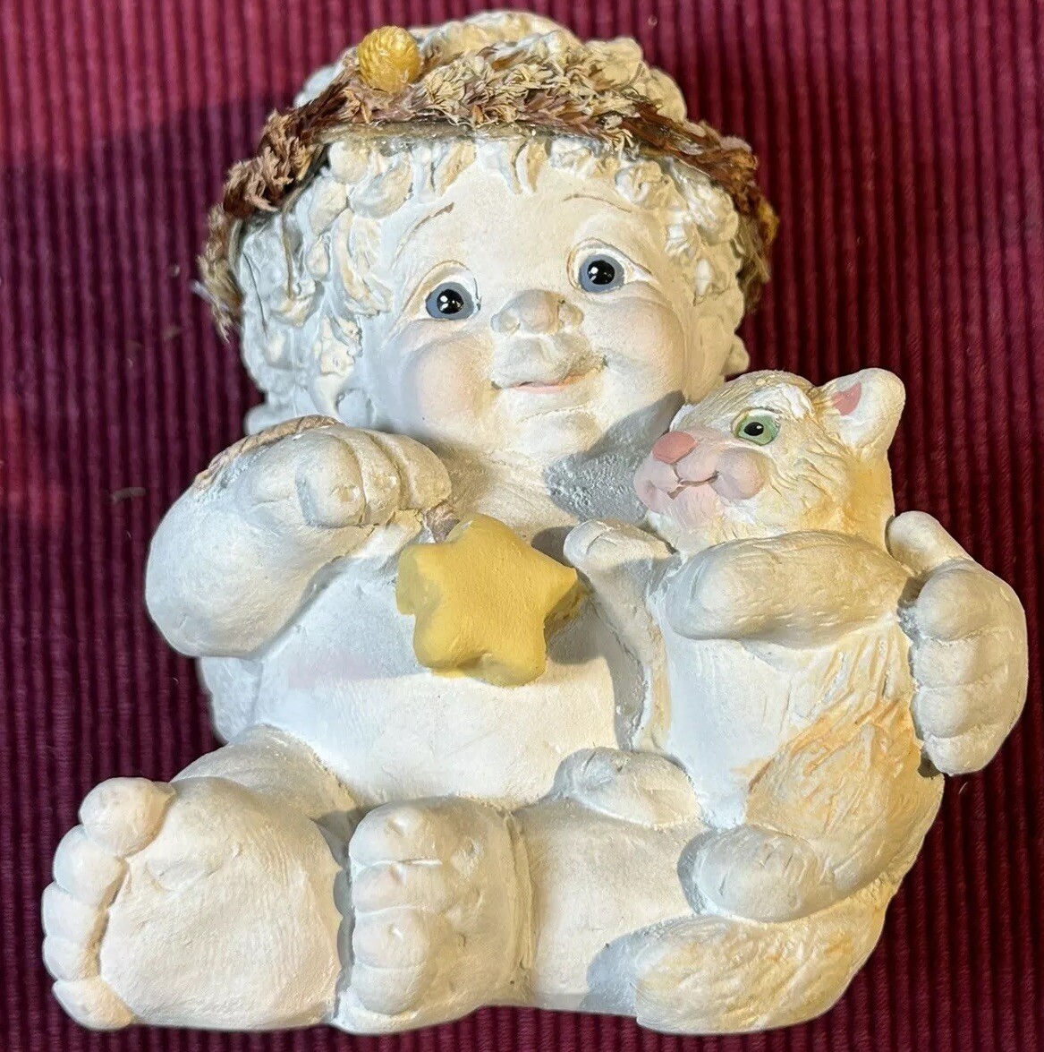 Dreamsicles “Love My Kitty” and 3 Little Sitting Cherubs Cast Art Figurines by Kristin. This is a bundle of 4 angel Dreamsicles. They are from 1991 and 1994, made by Cast Art. Each of the 3 little angels is stamped “Kristin” on the bottom. The larger figurine has “Kristin” actually hand scored into the clay. They are super cute and in good condition. Please see photos for details. Measurements are approximate. Smoke free home. I use recycled materials in shipping whenever possible and advisable. Please let me know if you have any questions.