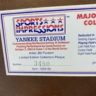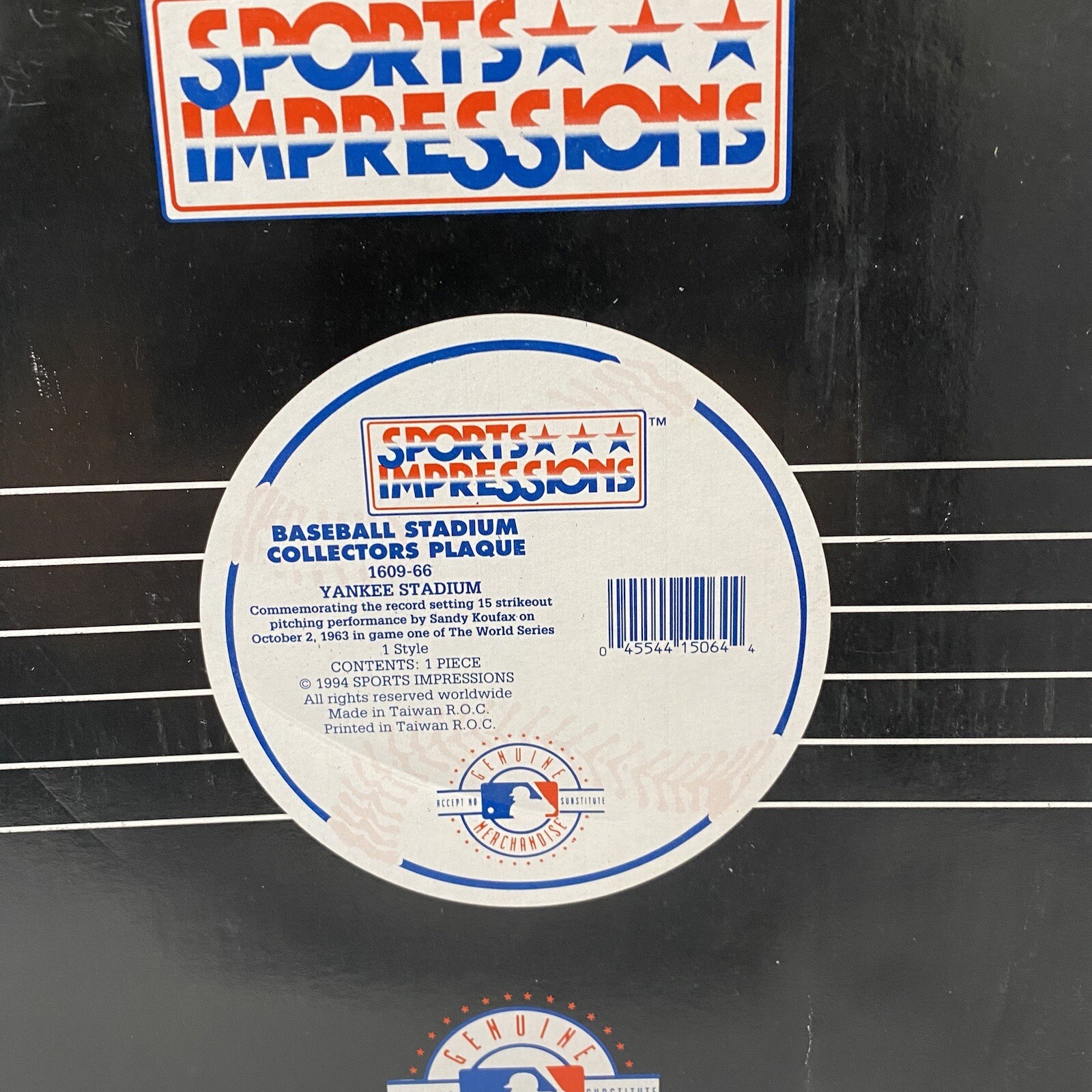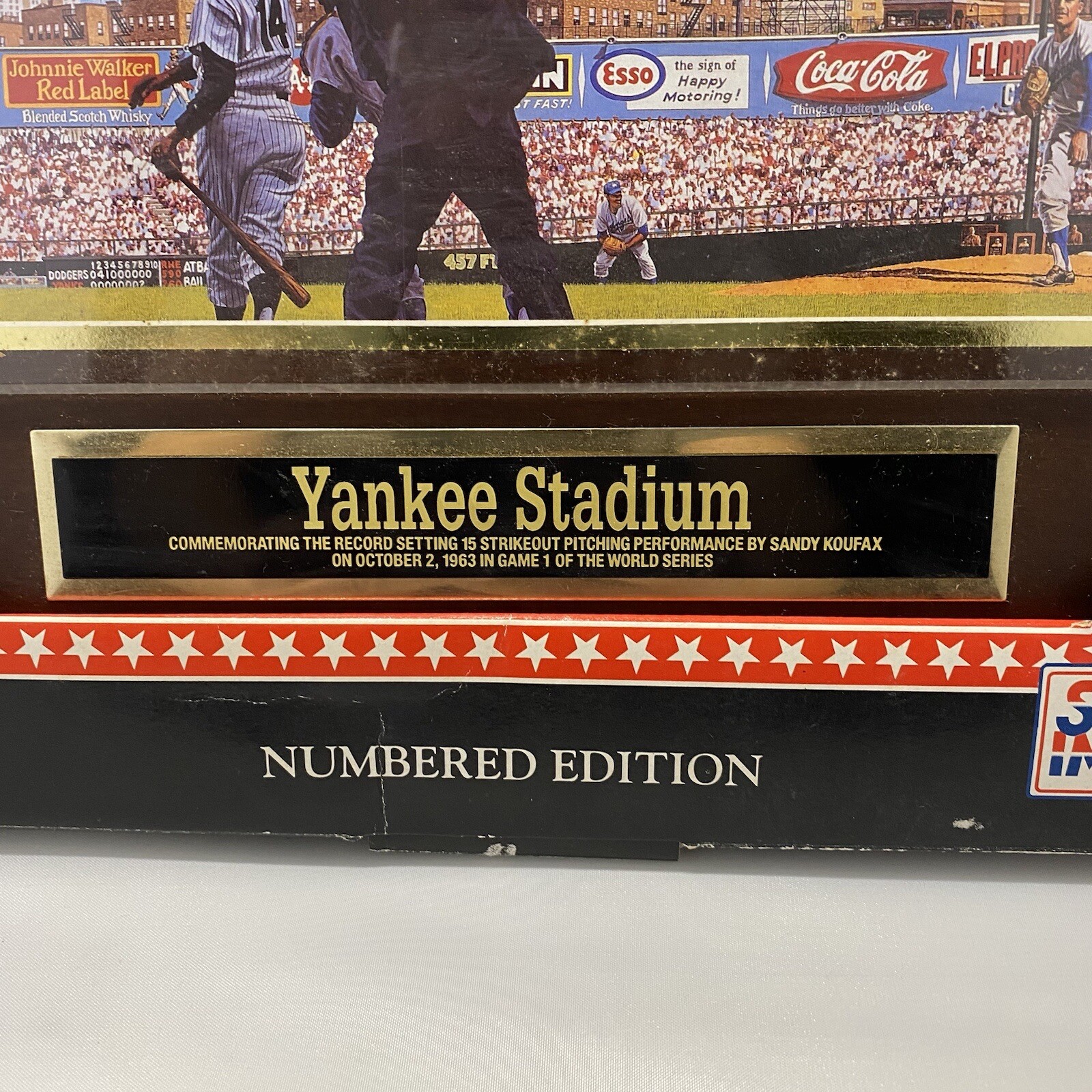 Vtg 1995 Yankee Stadium Sandy Koufax 15 Strike Outs Sports Impressions 3480 Vtg 1995 Yankee Stadium Sandy Koufax 15 Strike Outs Sports Impressions 3096 Yankee Stadium Major League Stadium Collectors Plaque 1995 Limited Edition 3096 New York Yankees Commemorating the Record Setting 15 Strikeout Pitching Performance by Sandy Koufax on October 2, 1963 in Game 1 of the World Series. Limited Edition Collectors Plaque Number 3096, Item:1606-66 Size: 13”x7.5” Yankee Stadium Collectors Plaque (Sandy Koufax 10/2/1963) Ltd Edition 2480
