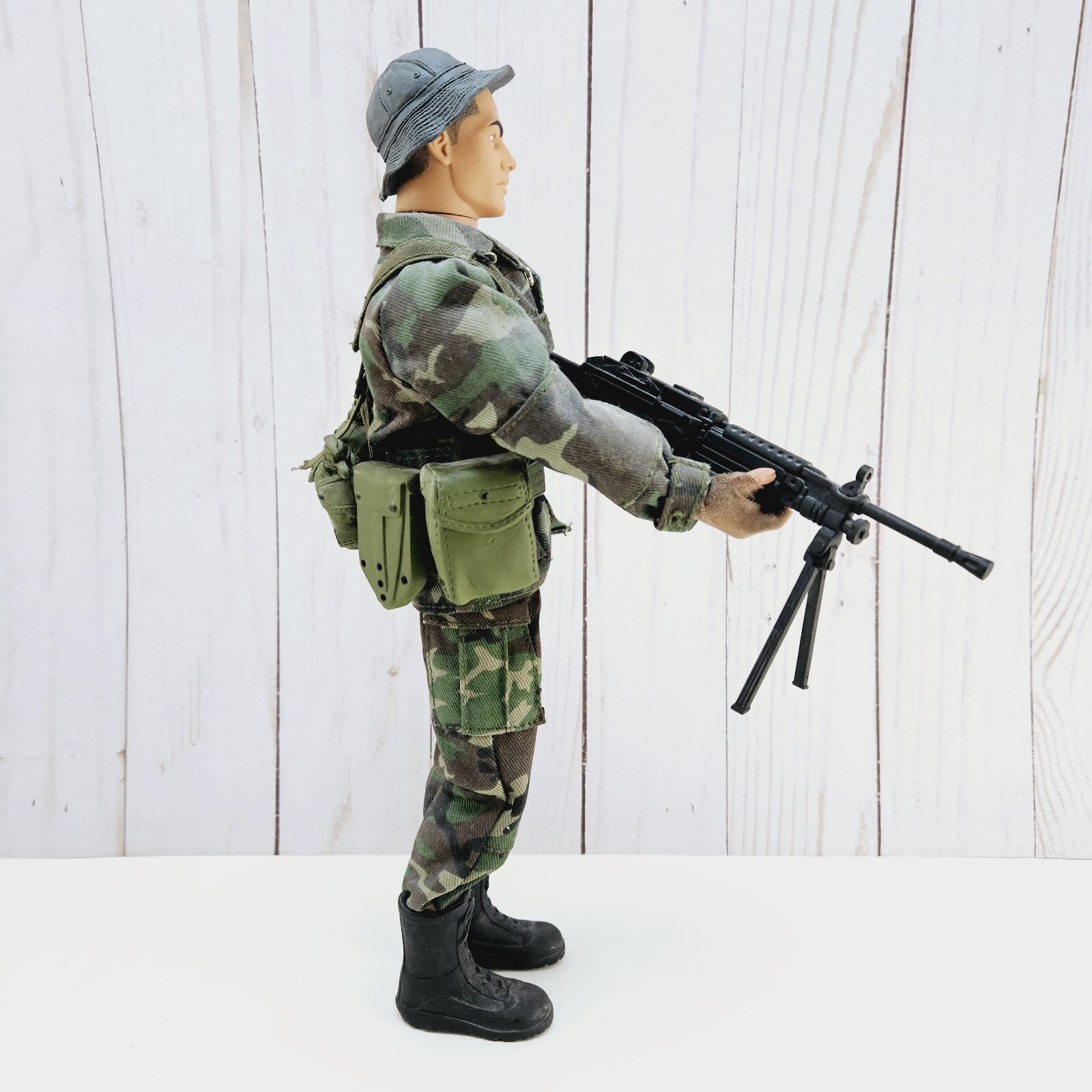 This vintage 1996 GI Joe action figure is a must-have for collectors! The camo uniform looks sharp, and all the gear—like the M249 rifle, canteens, and pouches—is intact. The figure moves smoothly and stands tall at nearly 12 inches. Excellent condition, perfect for display or play!