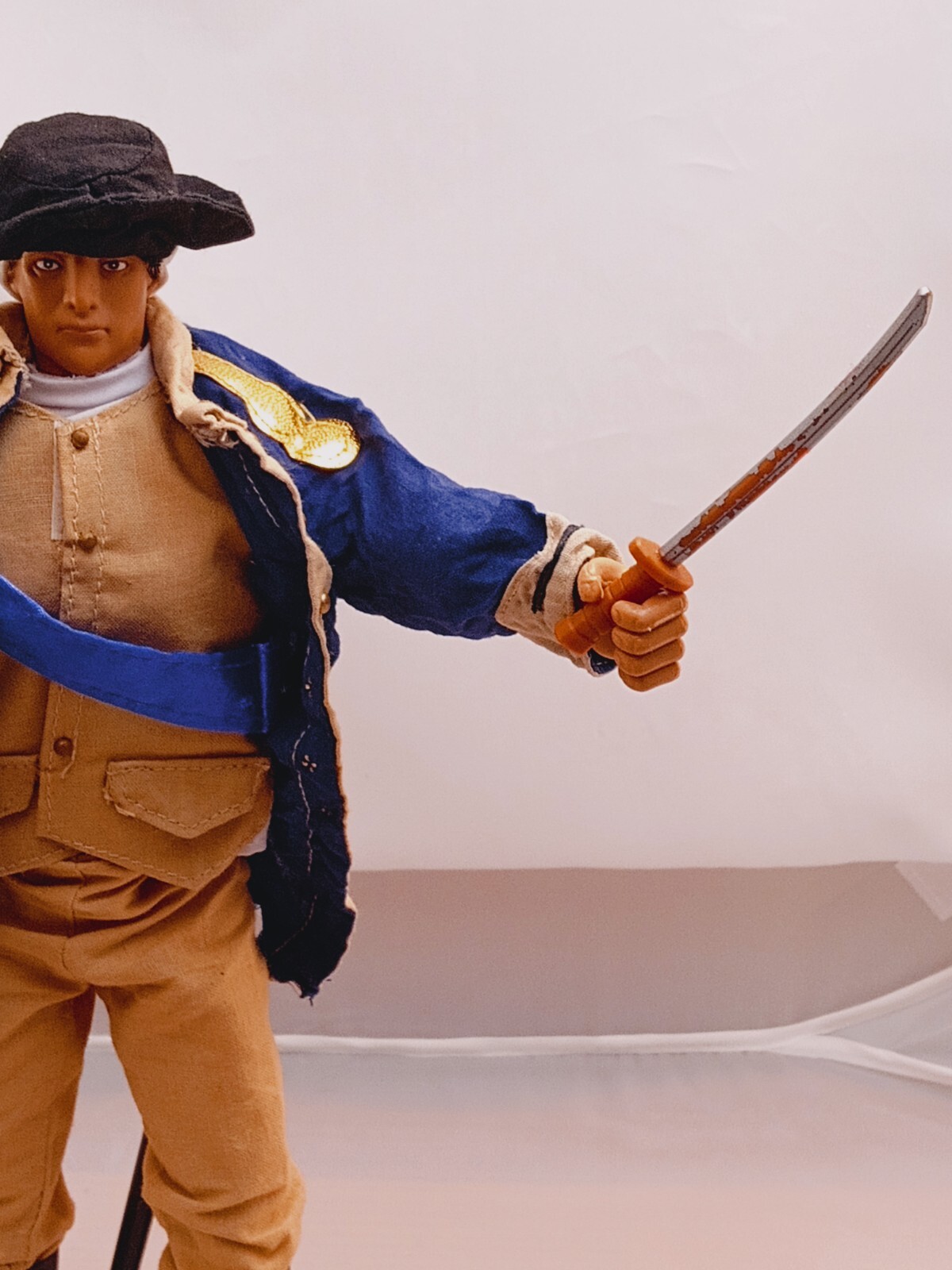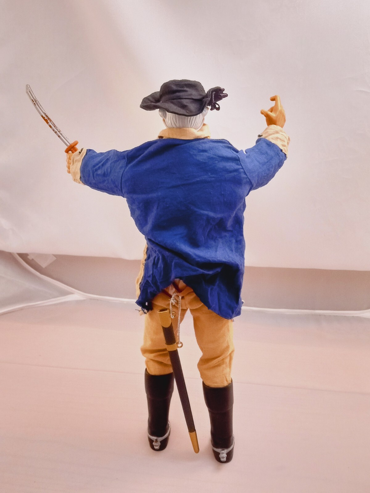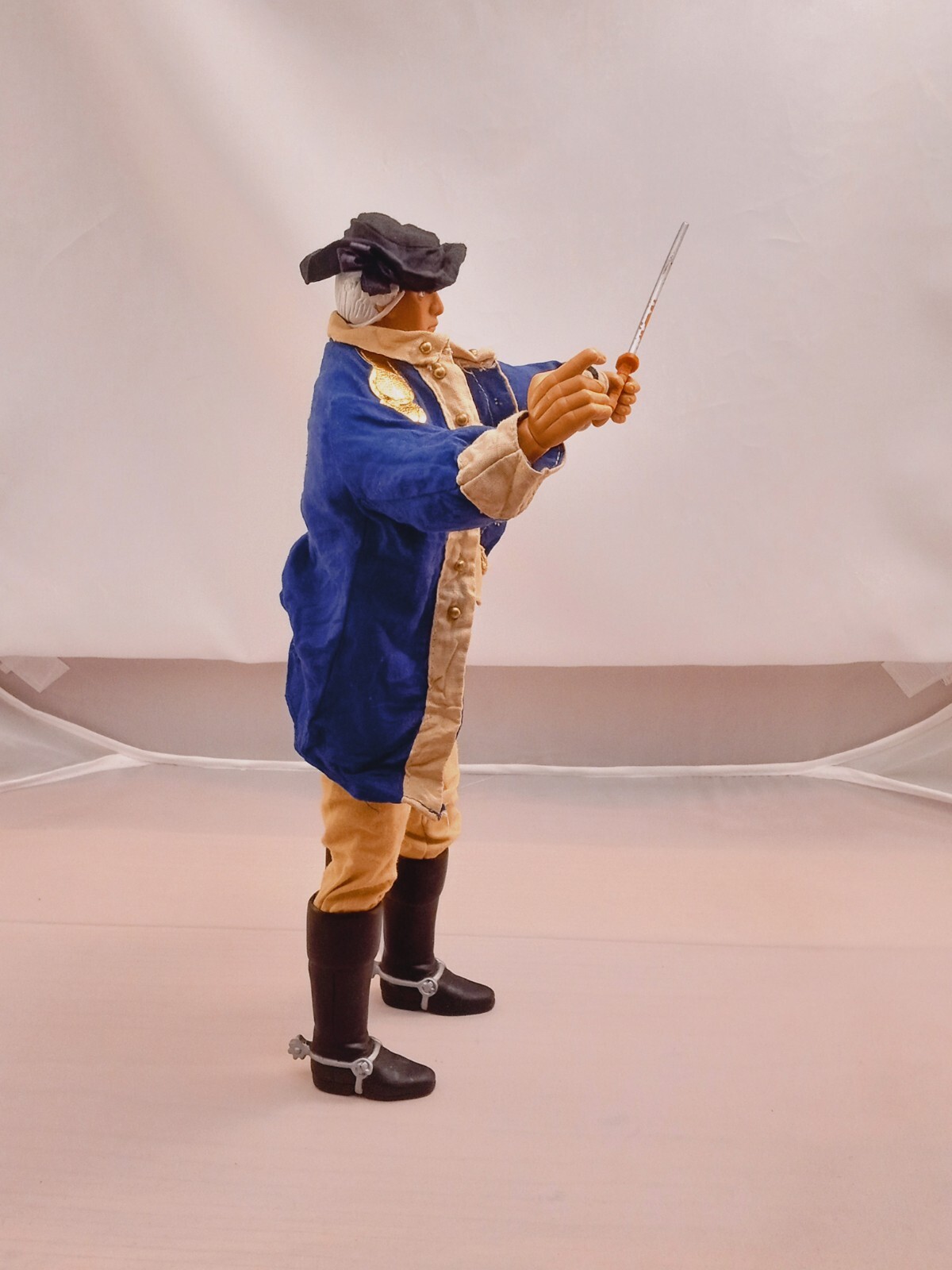 This is a 1998 GI Joe action figure of General George Washington from the Classic Collection. It is a multicolor plastic figure in 1:6 scale, featuring limited edition cloth clothing. The figure is part of a vintage series by Hasbro and is based on the historical figure George Washington.