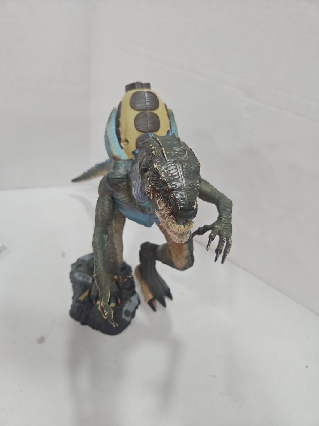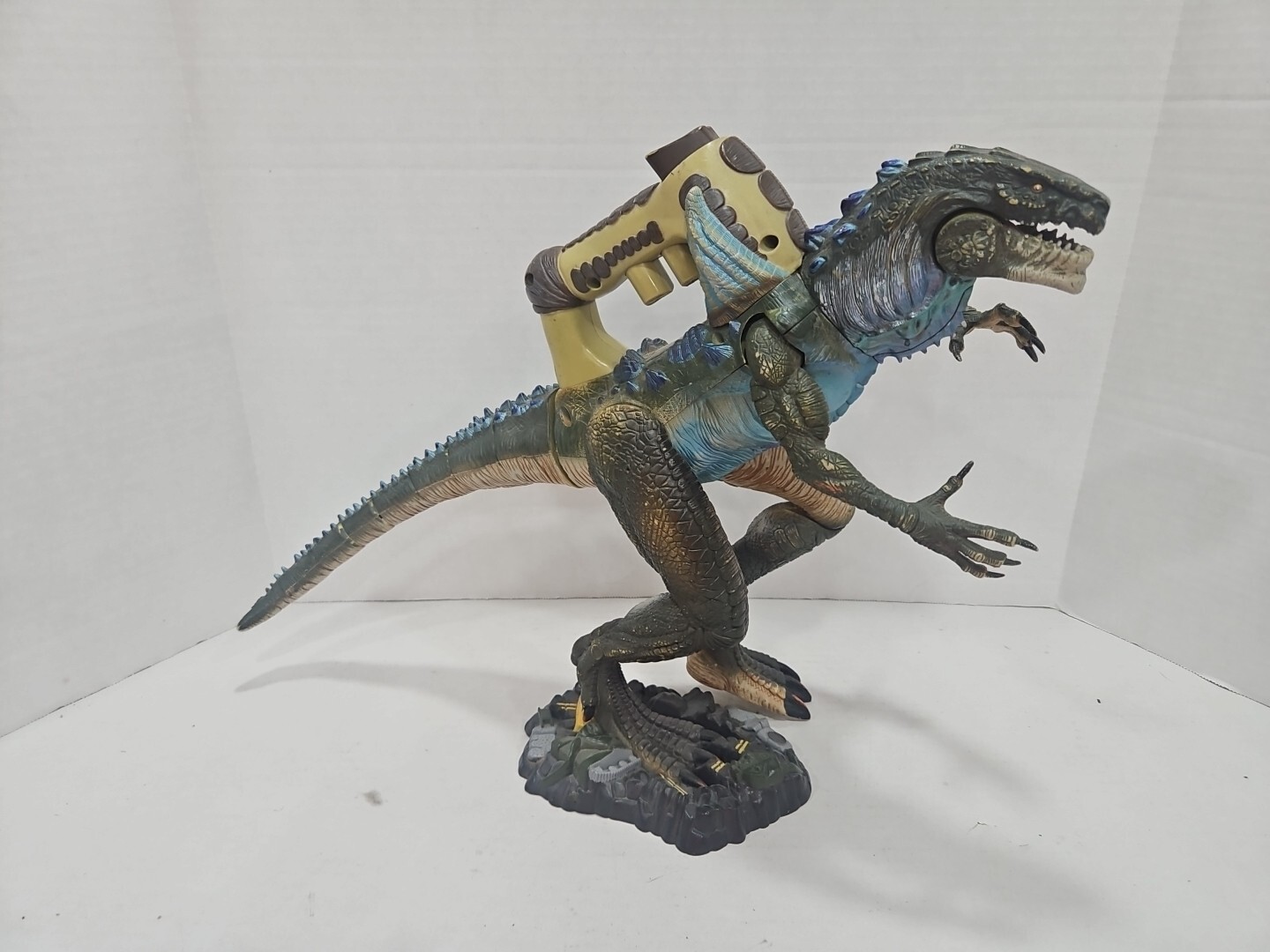 This is a vintage 1998 ToyBiz Godzilla action figure from the Animated Adventures series. The figure is a 14-inch tall multicolored plastic toy representing Godzilla, a Tyrannosaurus Rex-like creature. It is part of the Godzilla franchise and features battle action. The item has been tested and is an original product from China. It is a collectible piece suitable for fans of Godzilla and dinosaur enthusiasts.