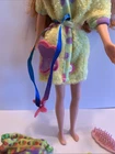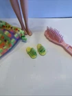 Relive the nostalgia of classic Barbie fun with the 1999 Pajama Fun Courtney Doll. Standing at an adorable 12 inches, this fashion doll captures the essence of bedtime antics and beauty pageants. Decked in her charming pajamas, complete with a sleeping bag, slippers, and robe, Courtney is ready for a cozy night in or a glamorous award ceremony. Crafted with attention to detail, the doll features removable clothes and wavy red hair that's perfect for brushing. Whether for collection or play, this original Mattel creation from the 1990s, made in China, comes without packaging, preserving the allure of its era. Embrace the simplicity and elegance of Barbie's world with this delightful doll. Also has the hair curlers.