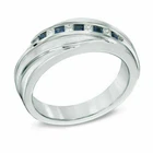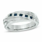 1CT Simulated Princess & 2Sapphire Band Men Ring 14K White Gold Plated On Silver